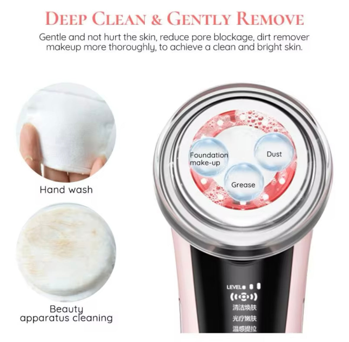This 4 in 1 Multifunctional face massager is perfect for those wanting to improve skin tone and texture. Its four functions include deep cleansing, exfoliating, toning, and massaging for a comprehensive skincare routine. Achieve a healthy, glowing complexion with this versatile tool. Helps penetrate skincare.
