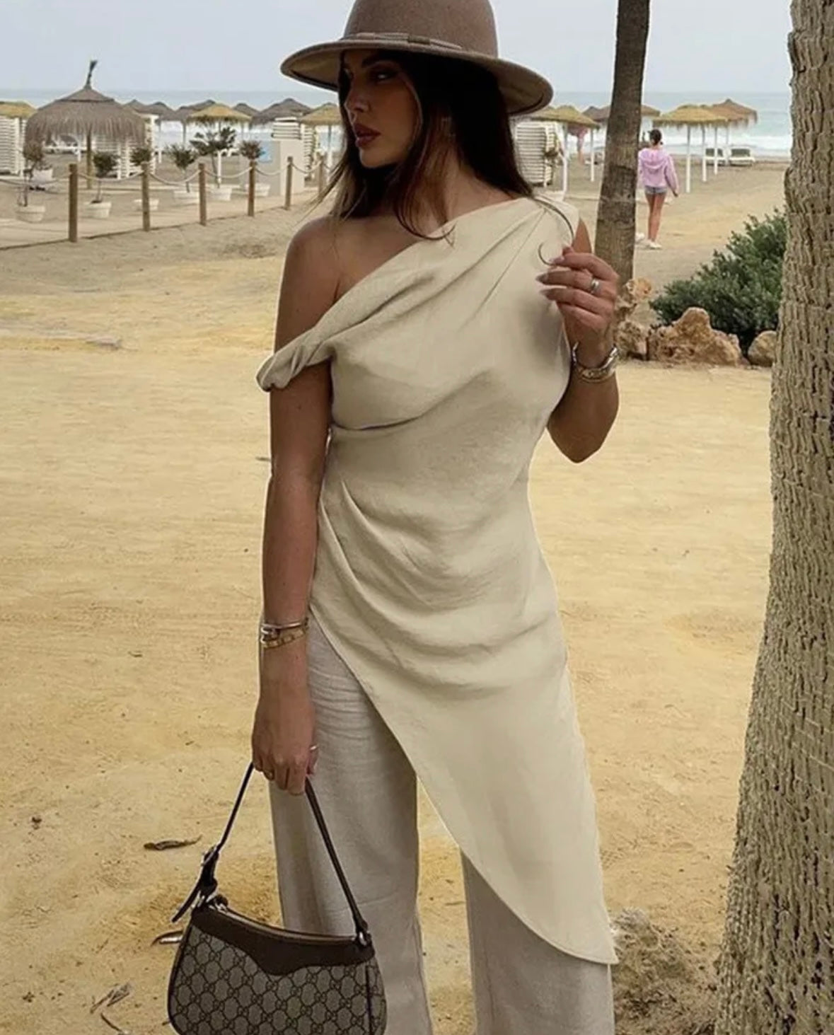 This elegant tunic top in beige is the perfect addition to any wardrobe. Its classy design is sure to elevate any outfit, making it a versatile and stylish choice for any occasion. The neutral color makes it easy to pair with any bottoms, making it a must-have for any fashion-forward individual.