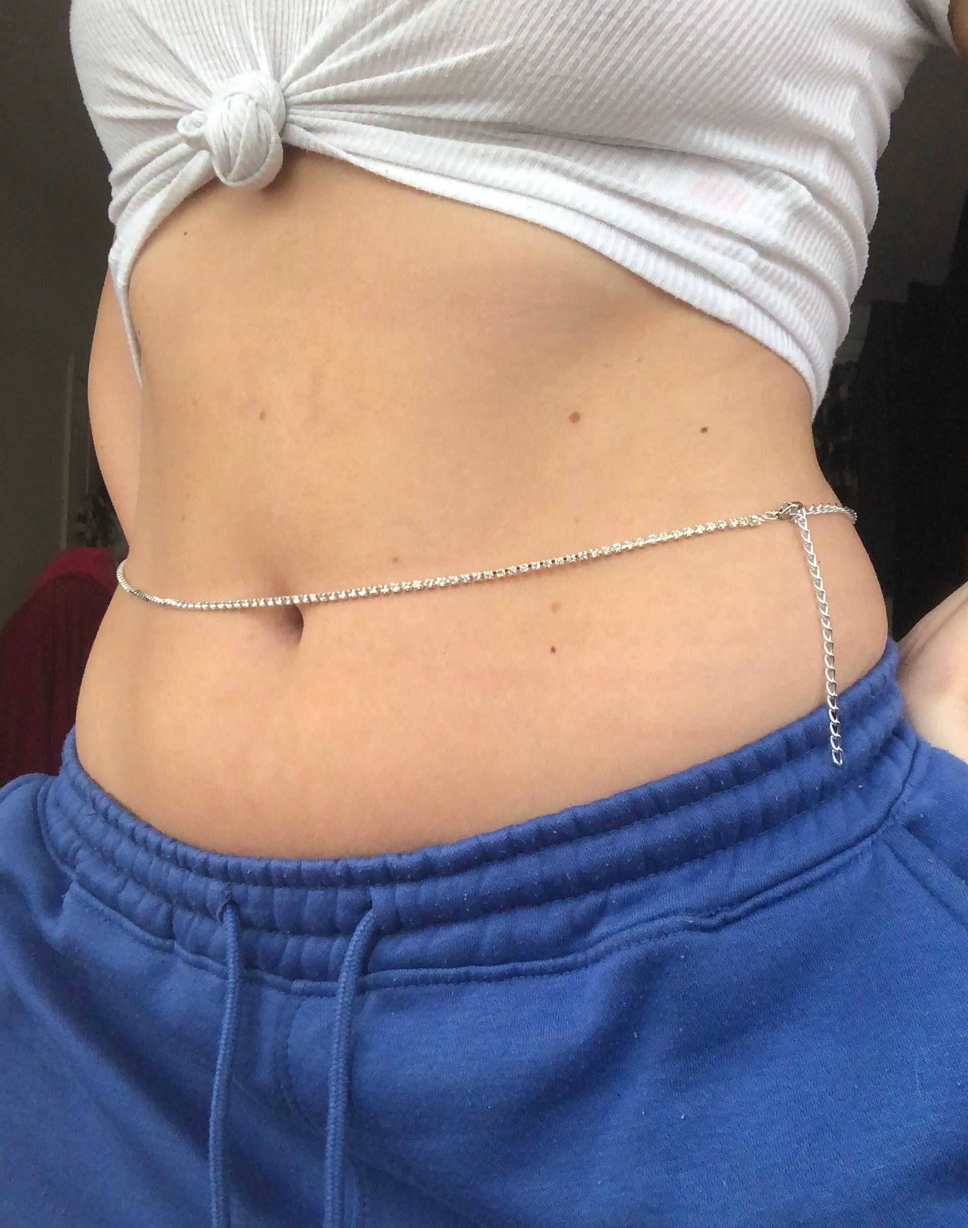 Cute handmade belly rhinestone cupchain with cute bunny pendant detail on the back.