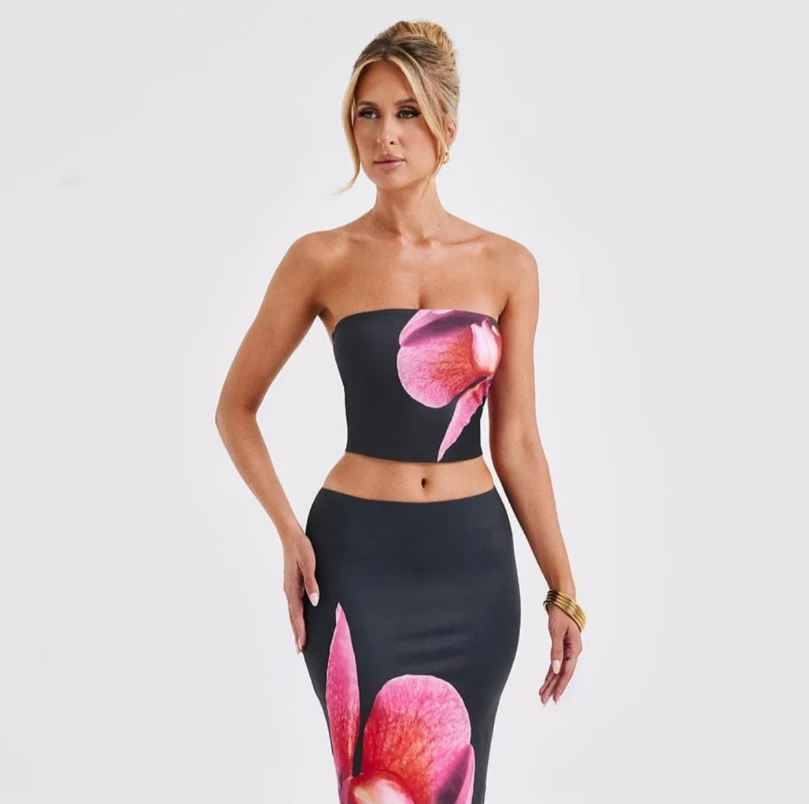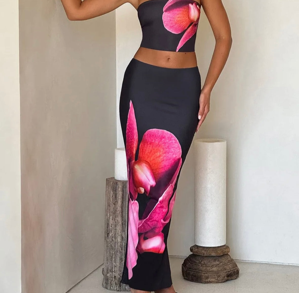 Elevate your summer wardrobe with our black flower print co ord set. This stylish set features intricate pink flower detailing, perfect for adding a pop of color to your ensemble. Made for comfort and style, this co ord set is a must-have for any fashion-forward individual.