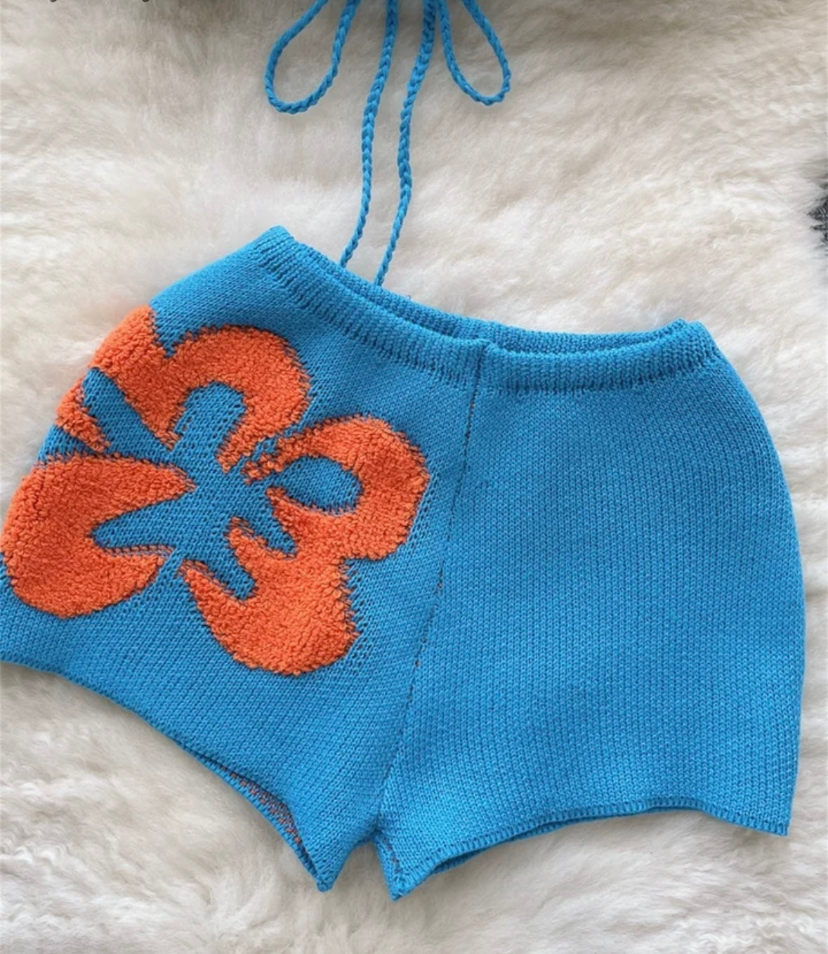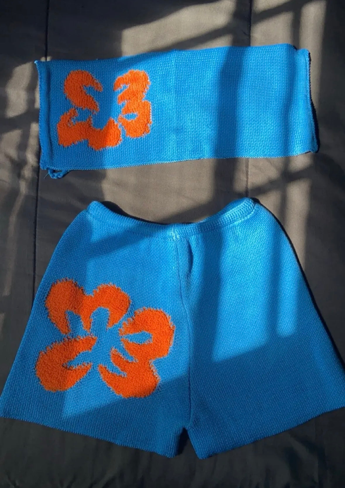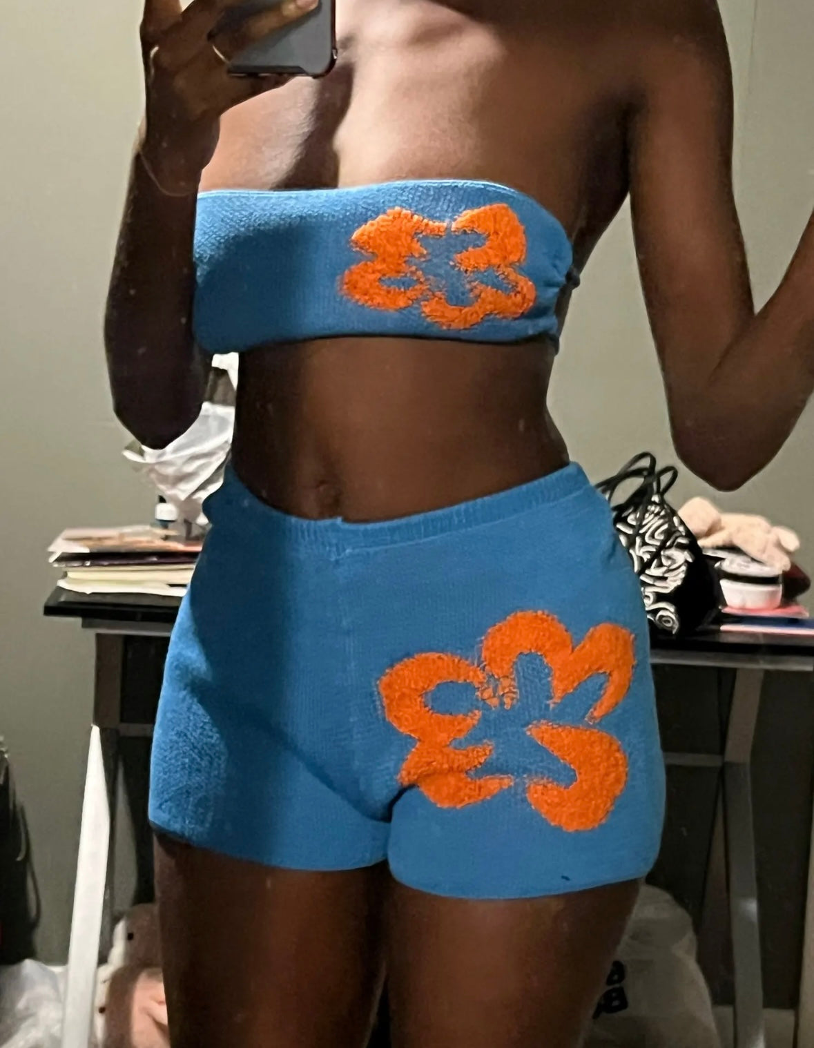 This cute blue summer co ord set is the perfect addition to your warm weather wardrobe. Featuring vibrant orange flower detailing, this set is both stylish and versatile. Made for comfort and style, it's the ultimate choice for any summer occasion.