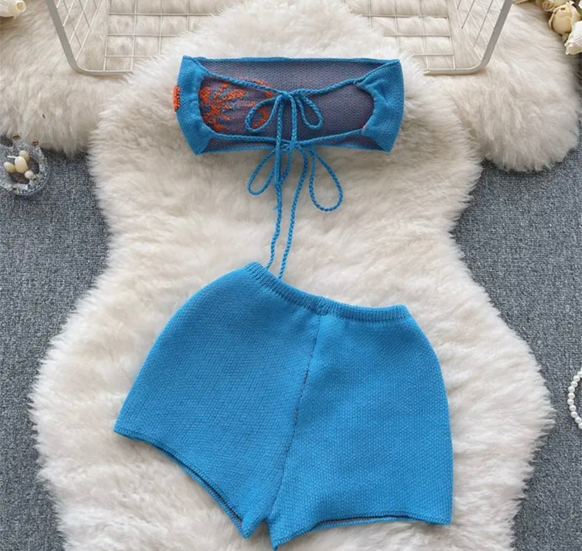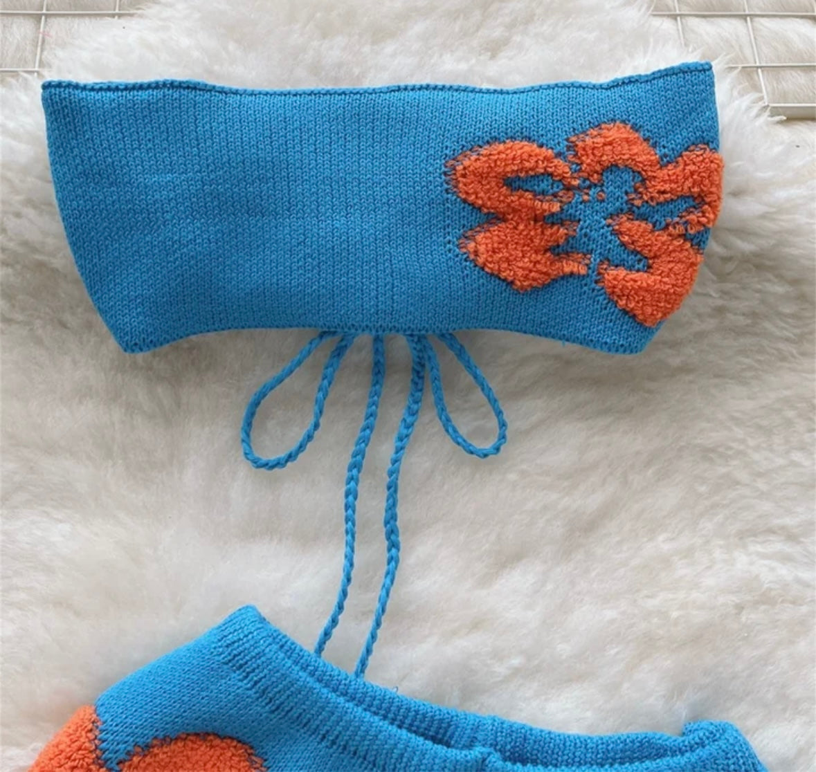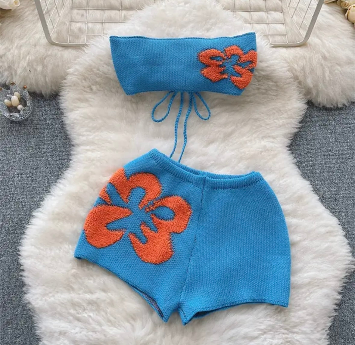 This cute blue summer co ord set is the perfect addition to your warm weather wardrobe. Featuring vibrant orange flower detailing, this set is both stylish and versatile. Made for comfort and style, it's the ultimate choice for any summer occasion.
