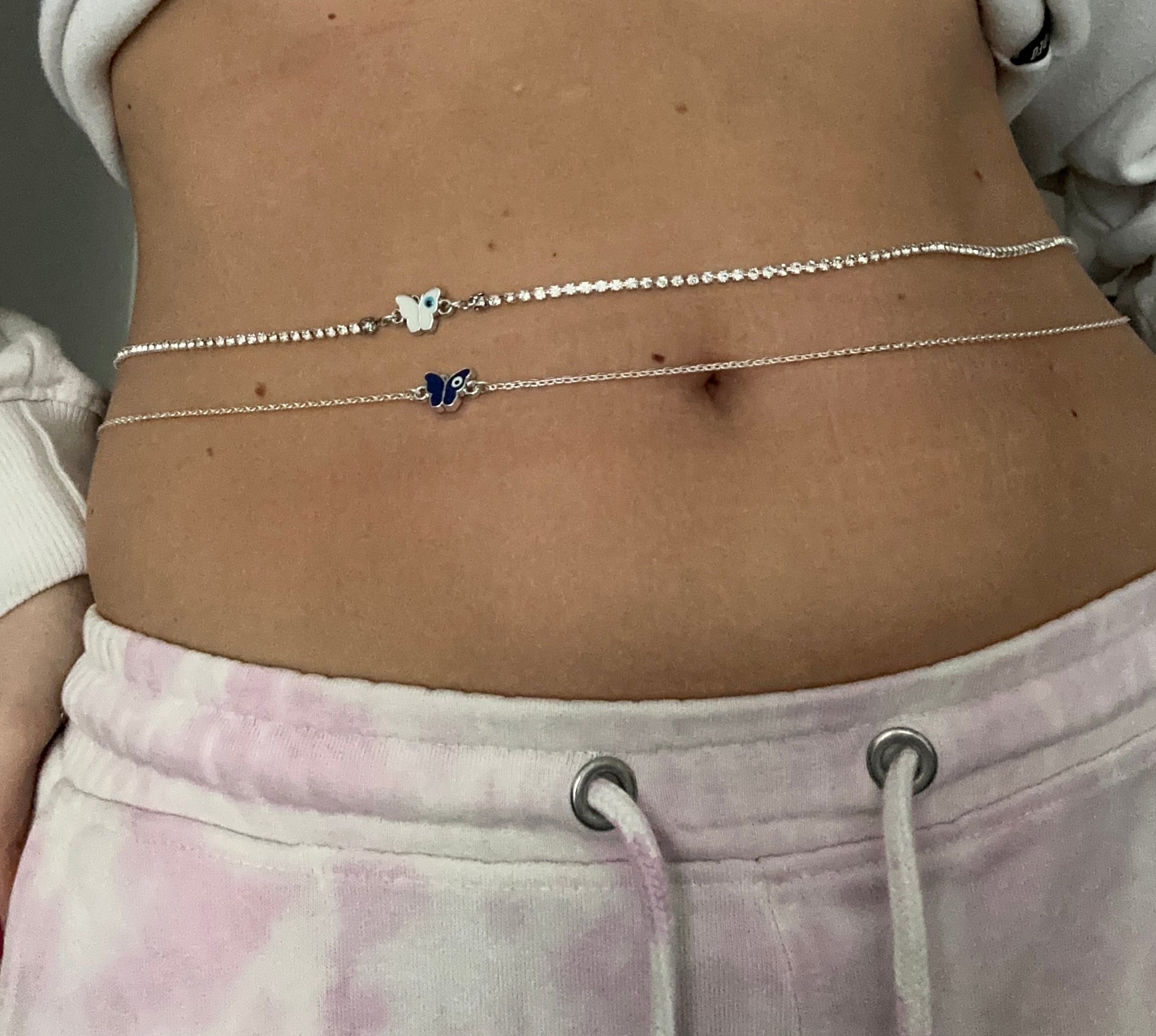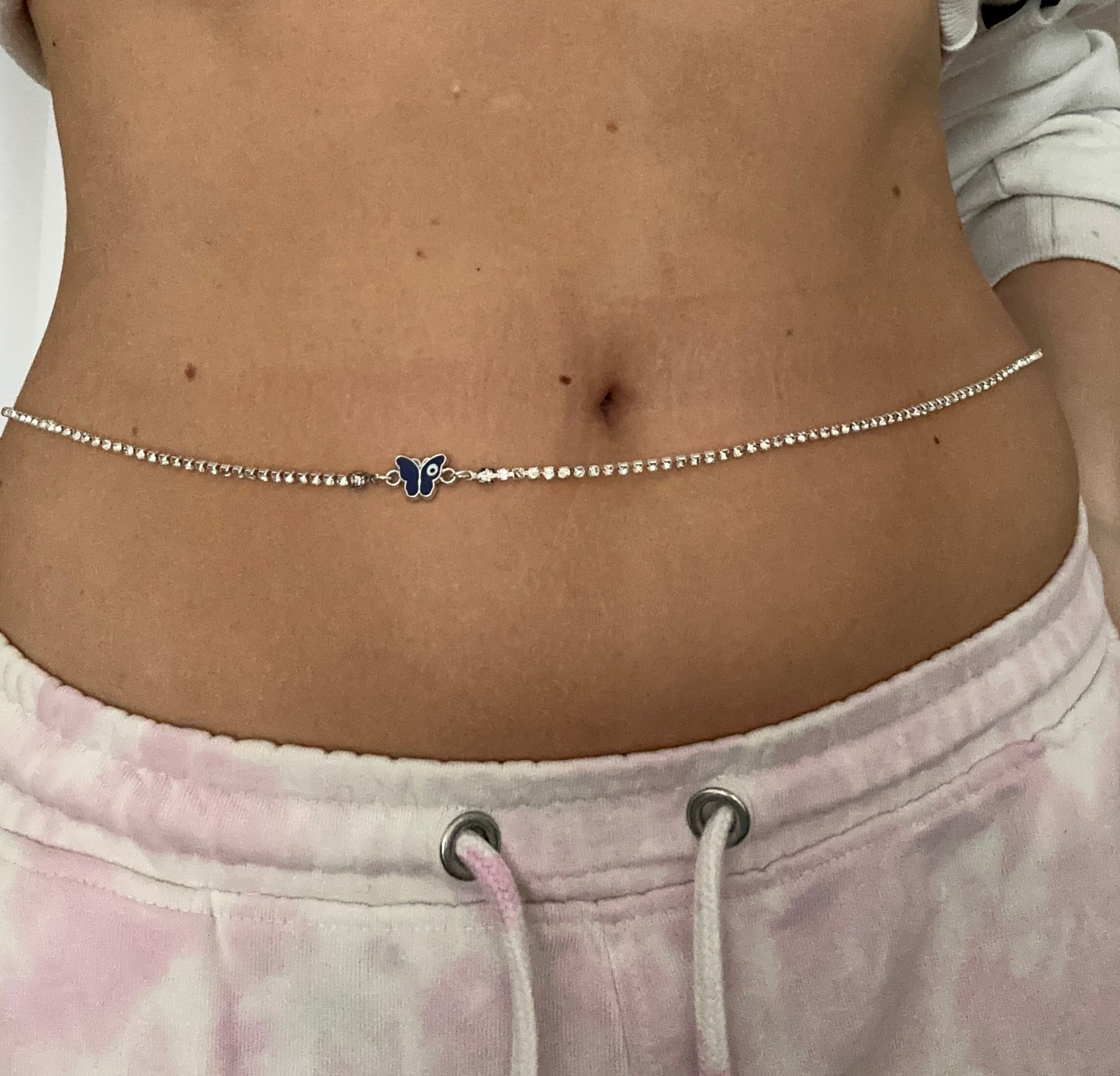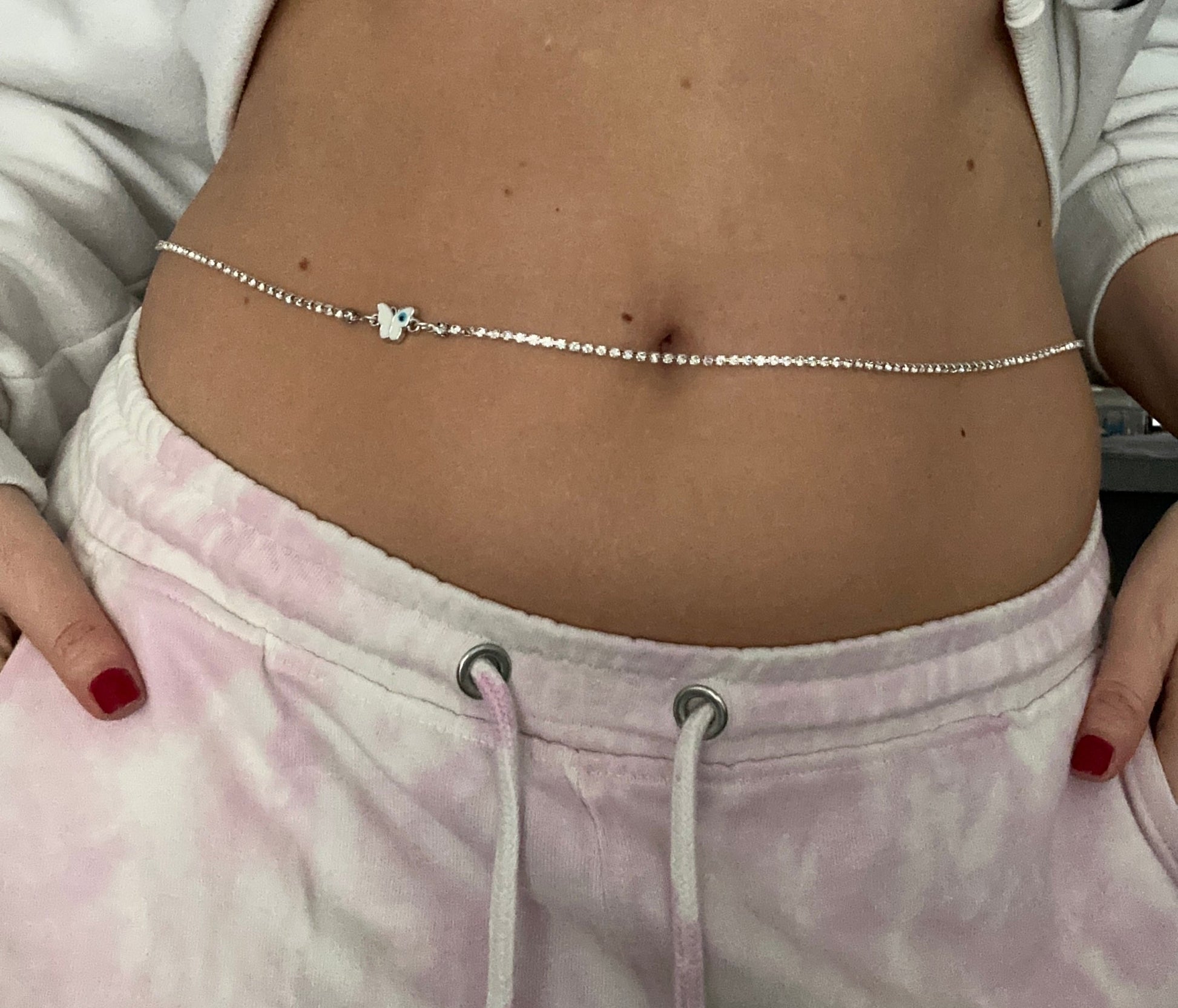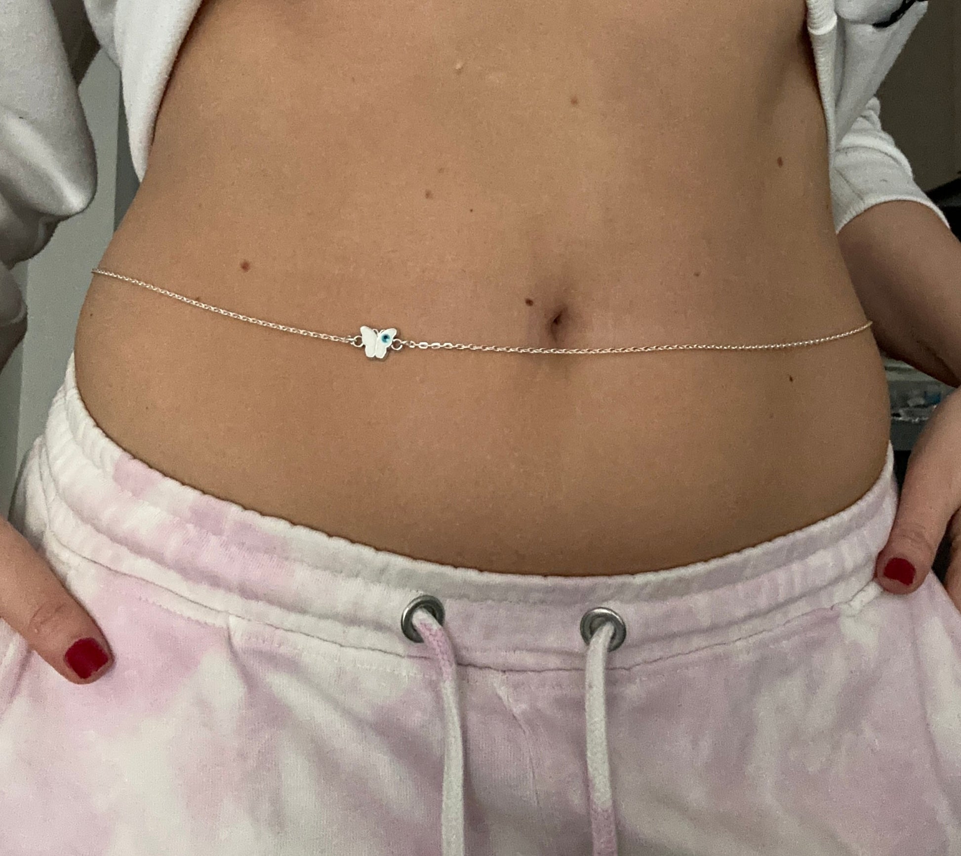 Cute handmade belly chain with butterfly evil eye pendant detail