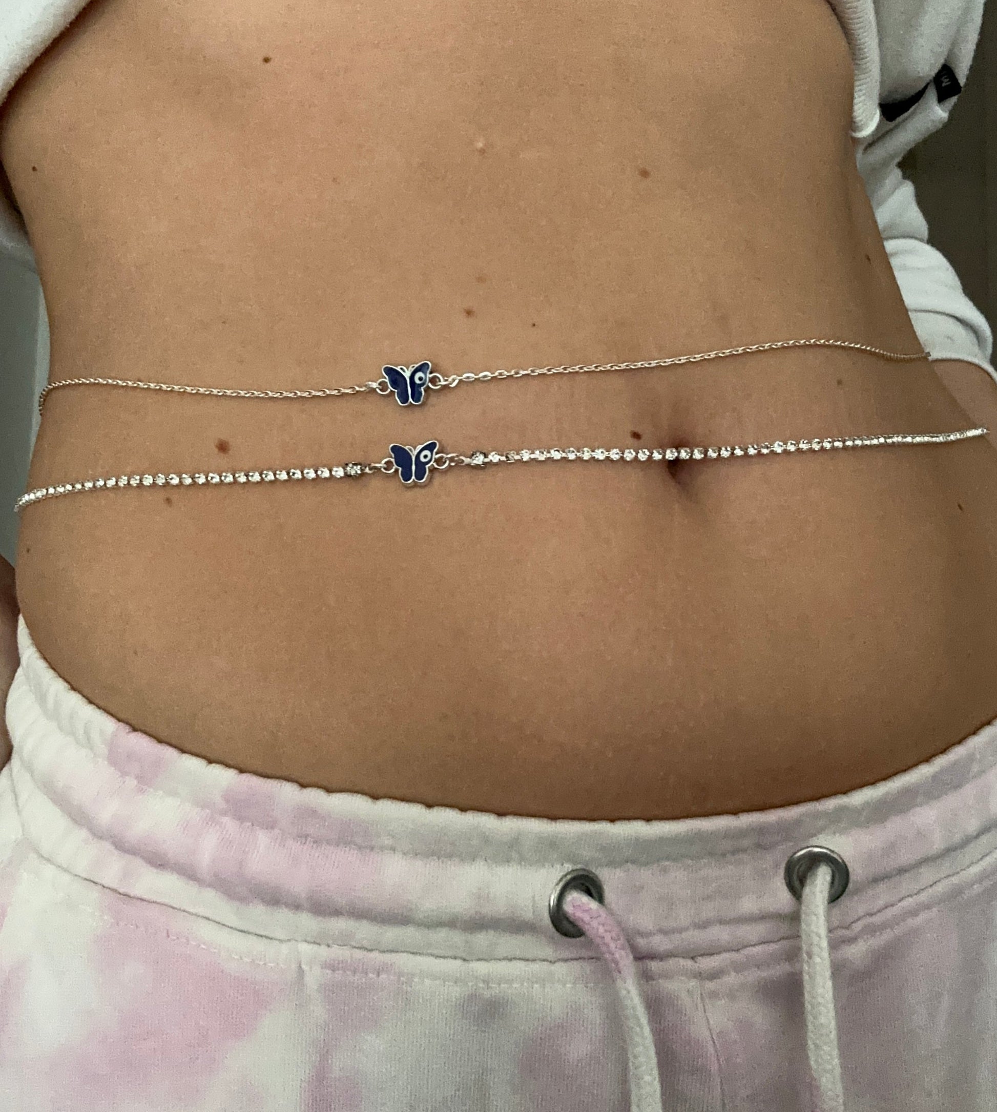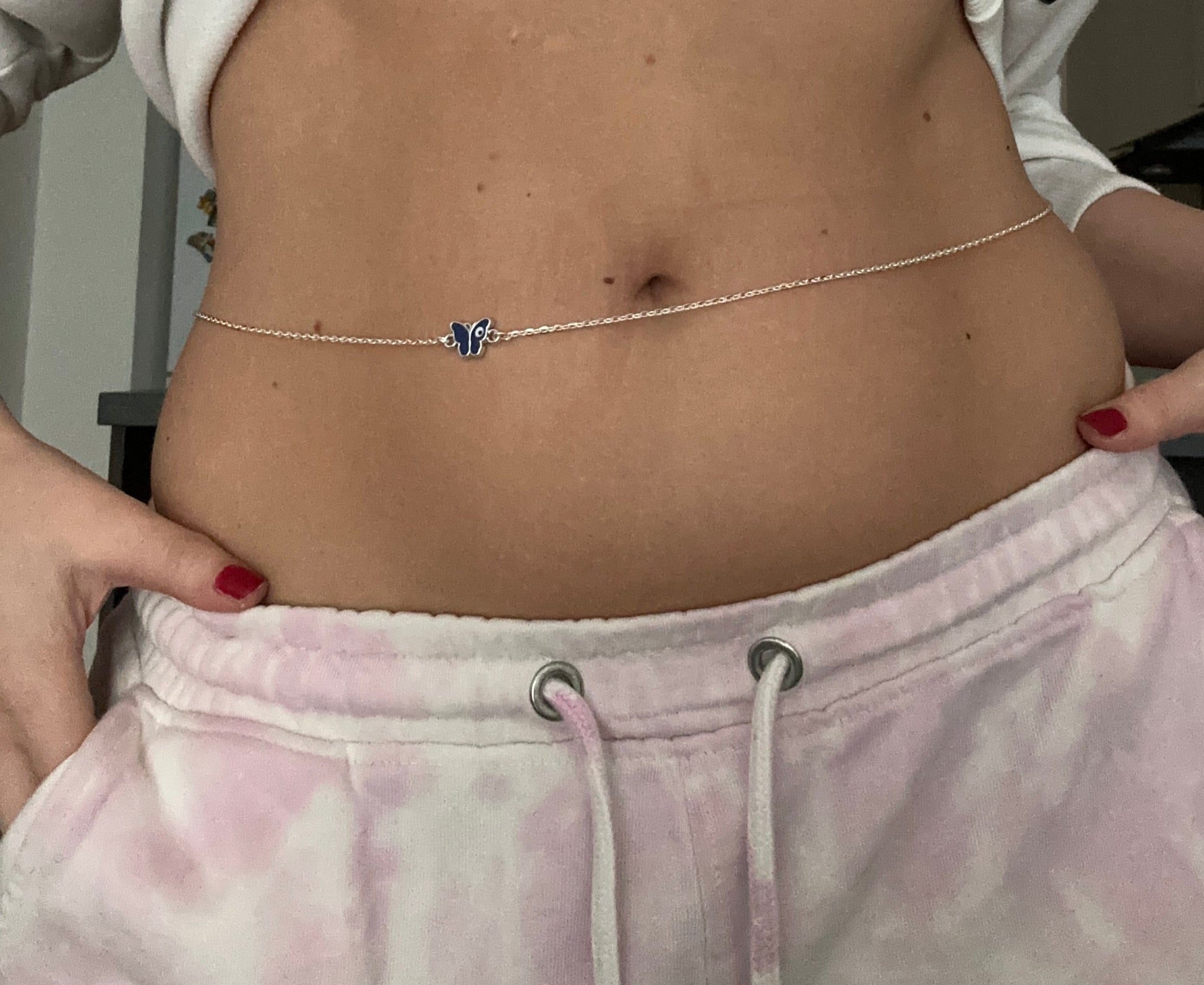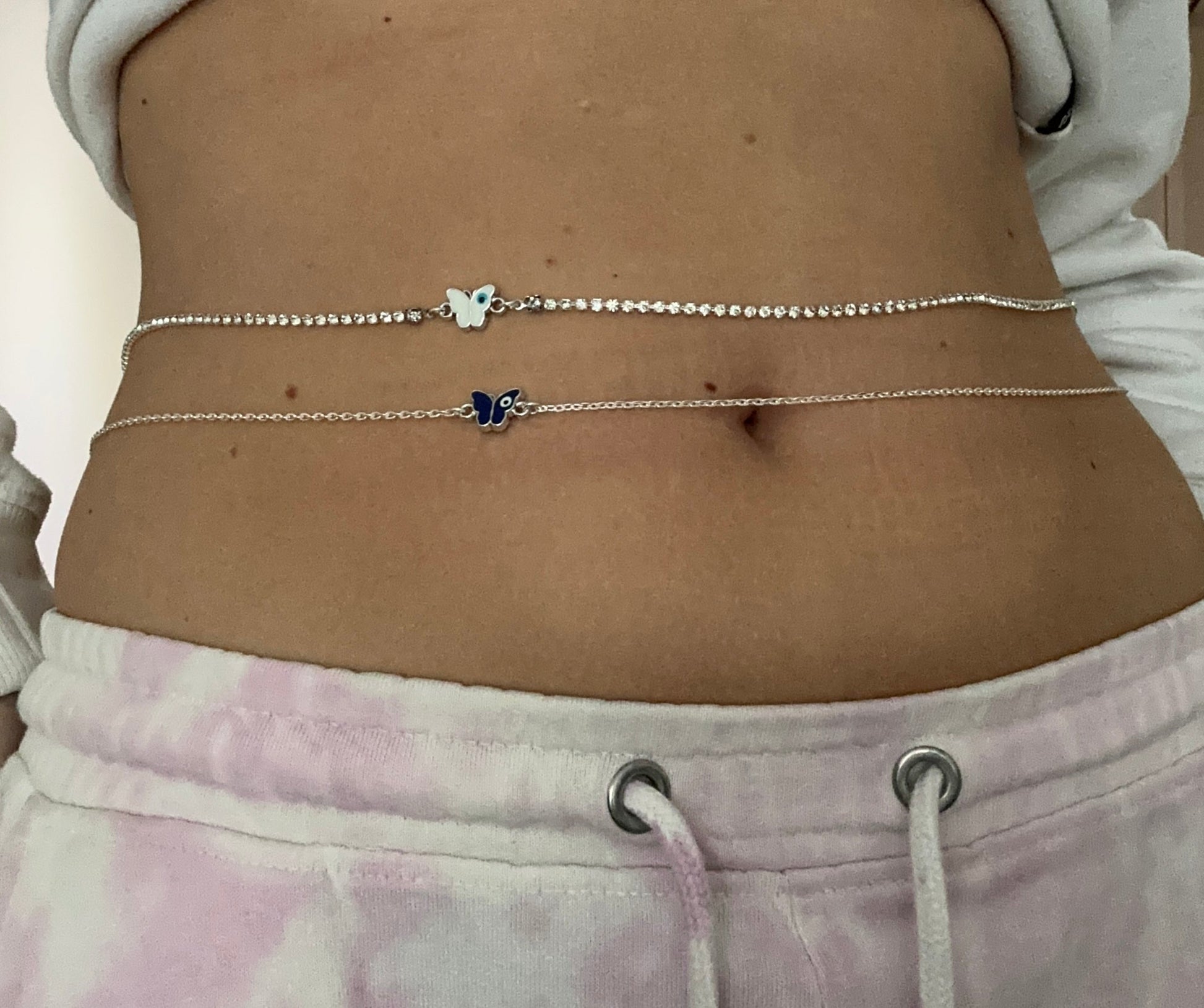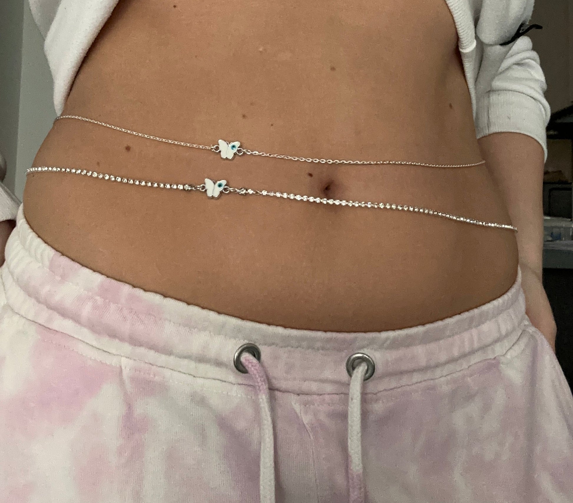 Cute handmade belly chain with butterfly evil eye pendant detail