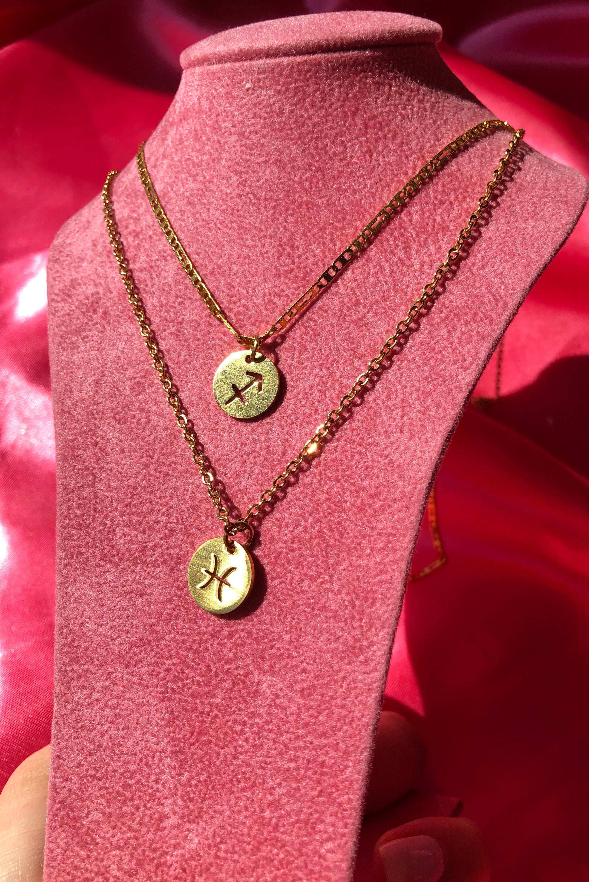 Beautiful handmade necklace with a circle zodiac sign pendant detail.