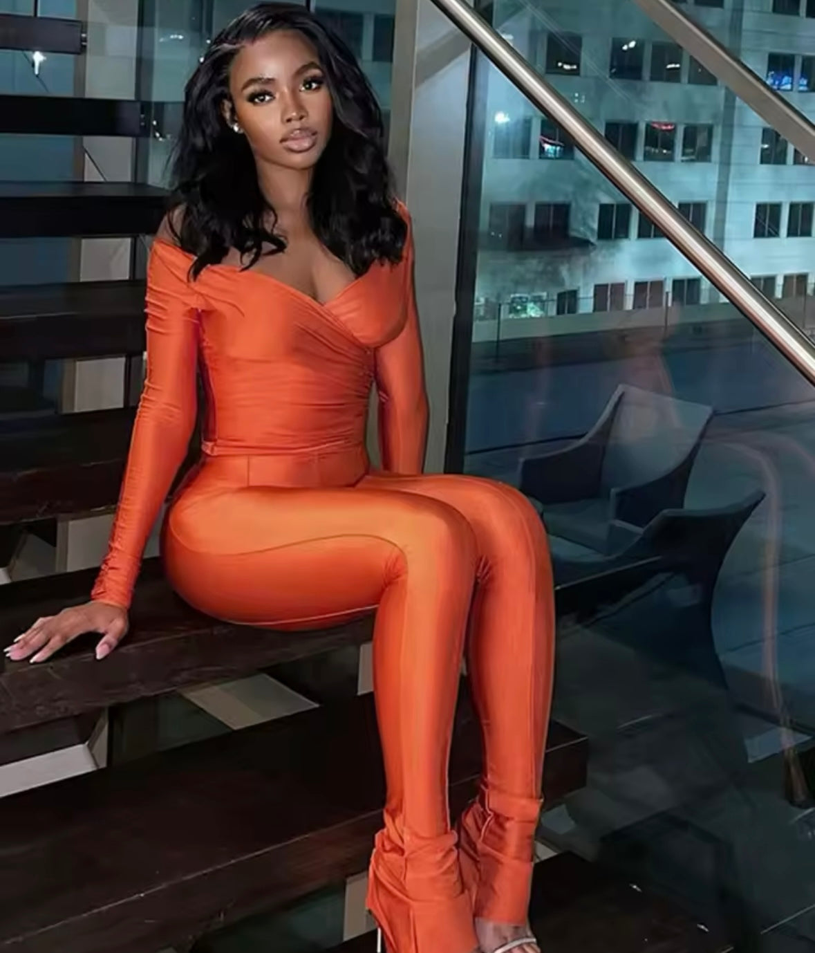 This elegant two piece set exudes sophistication and style. The pieces can be worn together for a chic look or separately to create versatile outfits. Elevate your wardrobe with this classy set.