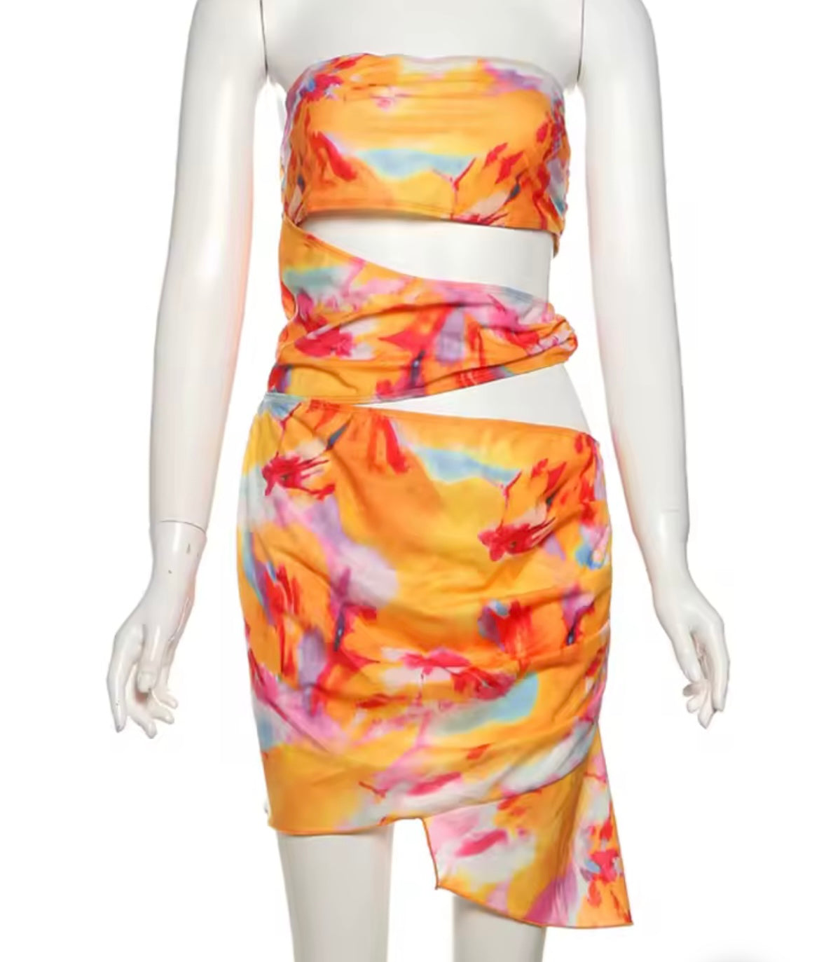 Add a pop of color and style to your wardrobe with our Colourful Cut Out Mini Dress. Made with vibrant colors and a chic cut out design, this dress is perfect for making a statement. Stand out at any event or occasion with this must-have piece.