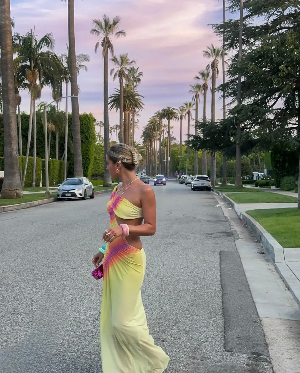 Introducing our summer maxi dress - the perfect addition to your wardrobe. With a stylish cut out design and vibrant colors, this dress will make you stand out in any summer event. Upgrade your summer style with this versatile maxi dress, both comfortable and fashionable.