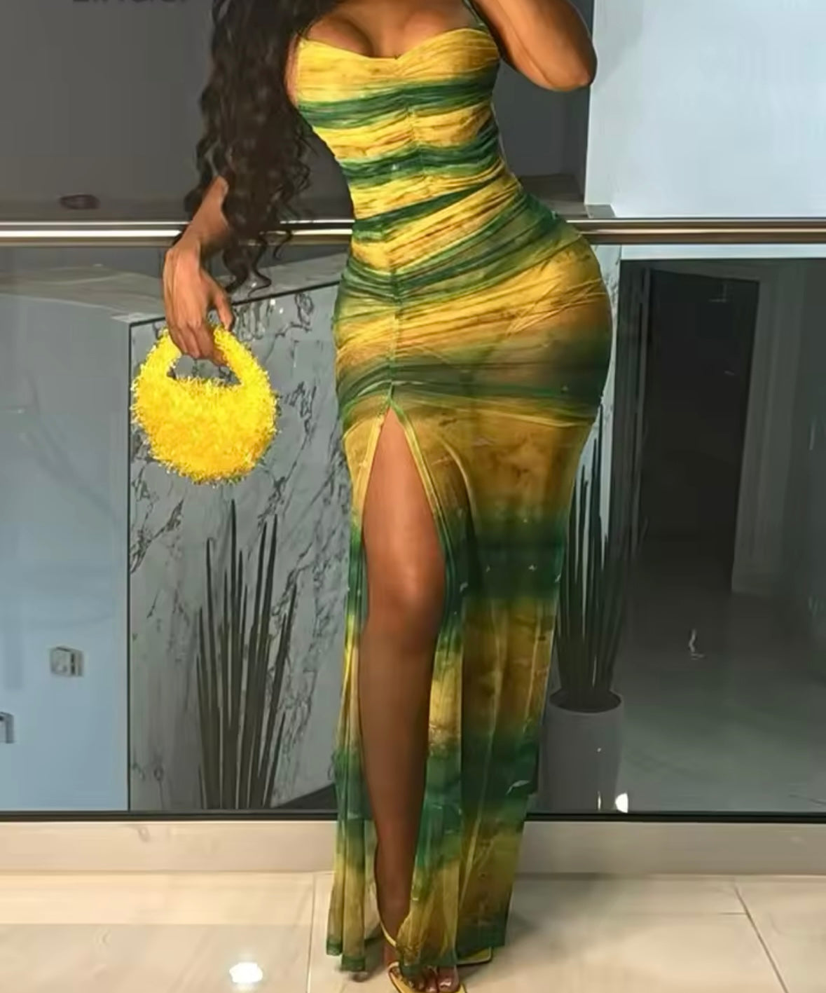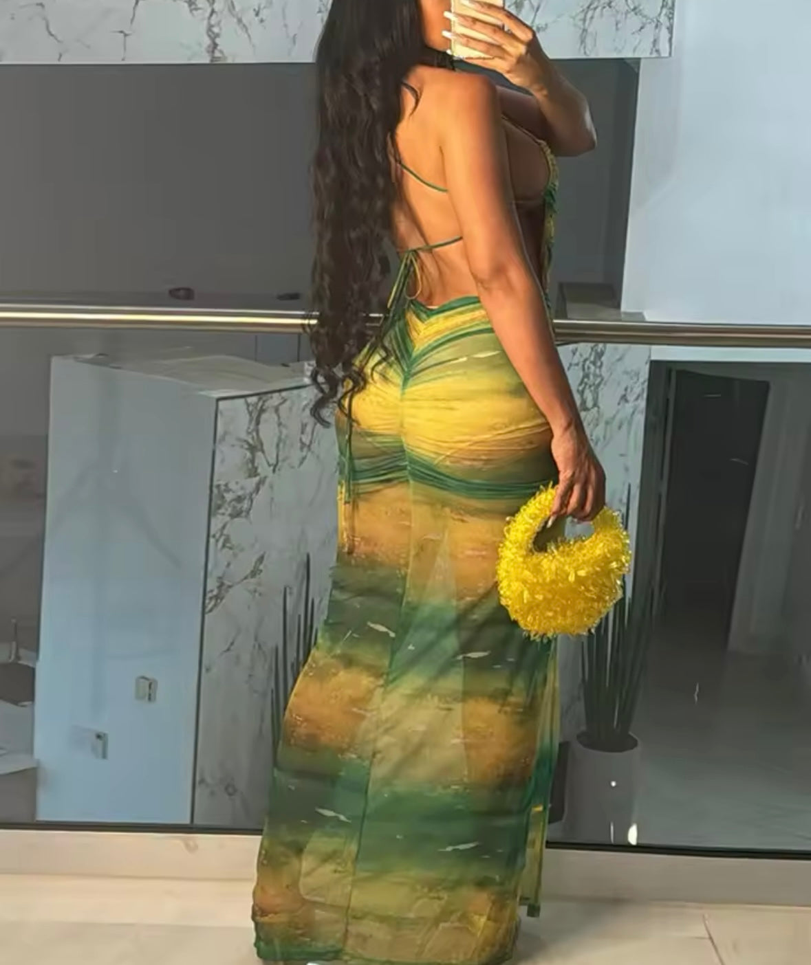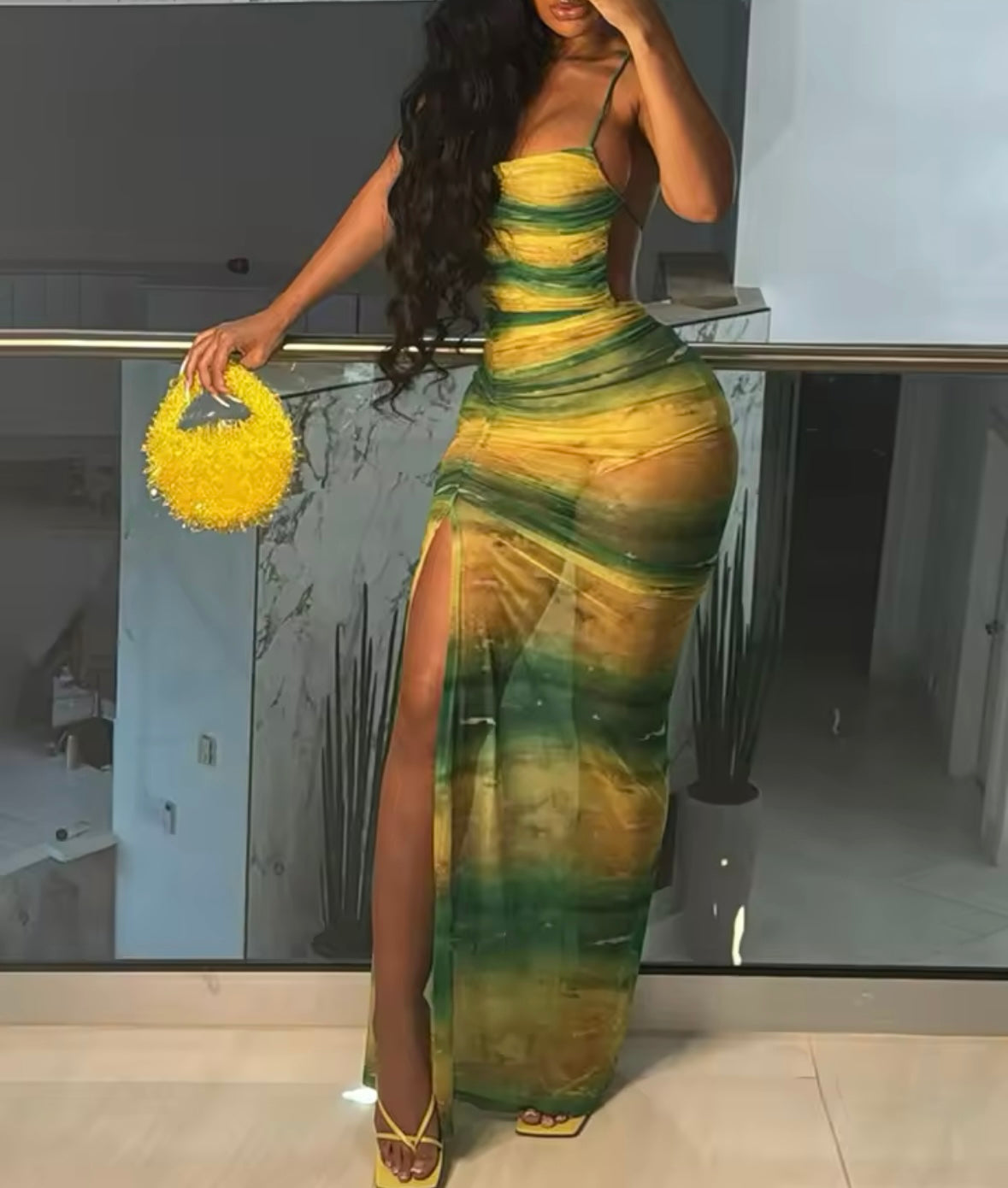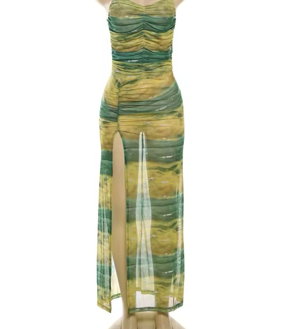 Expertly crafted from breathable and lightweight contrast mesh, this dress is designed to keep you cool and stylish. With its long, flowing silhouette, it's perfect for any occasion, making you stand out in the crowd. Stay effortlessly chic and comfortable with this must-have maxi dress.