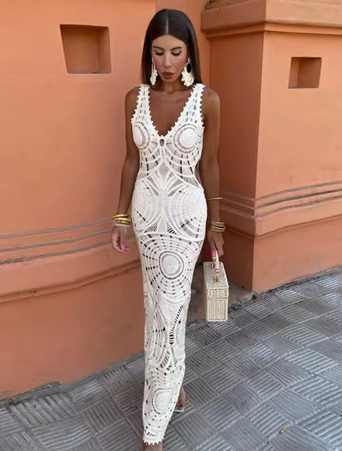 Crochet maxi beach dress