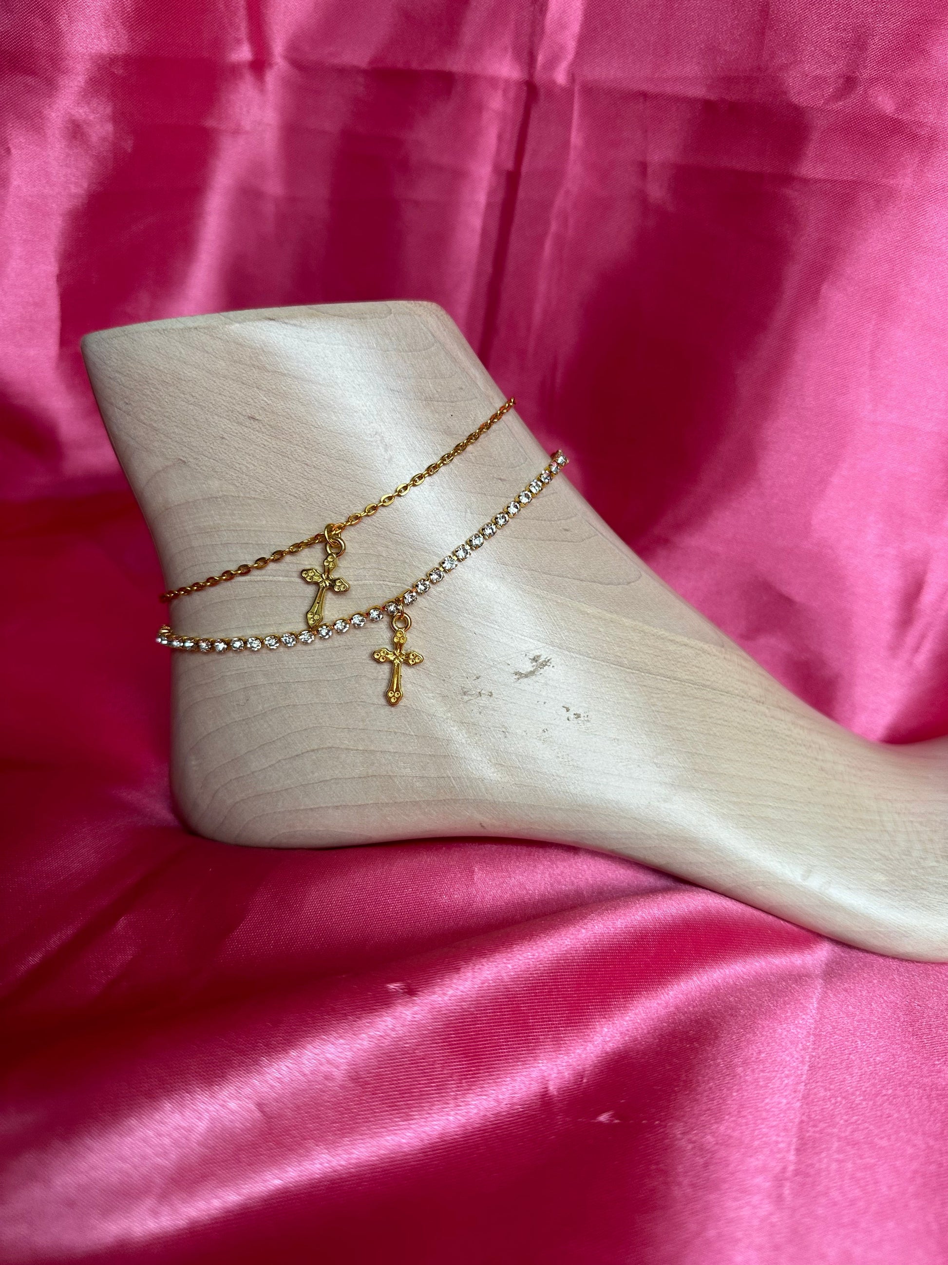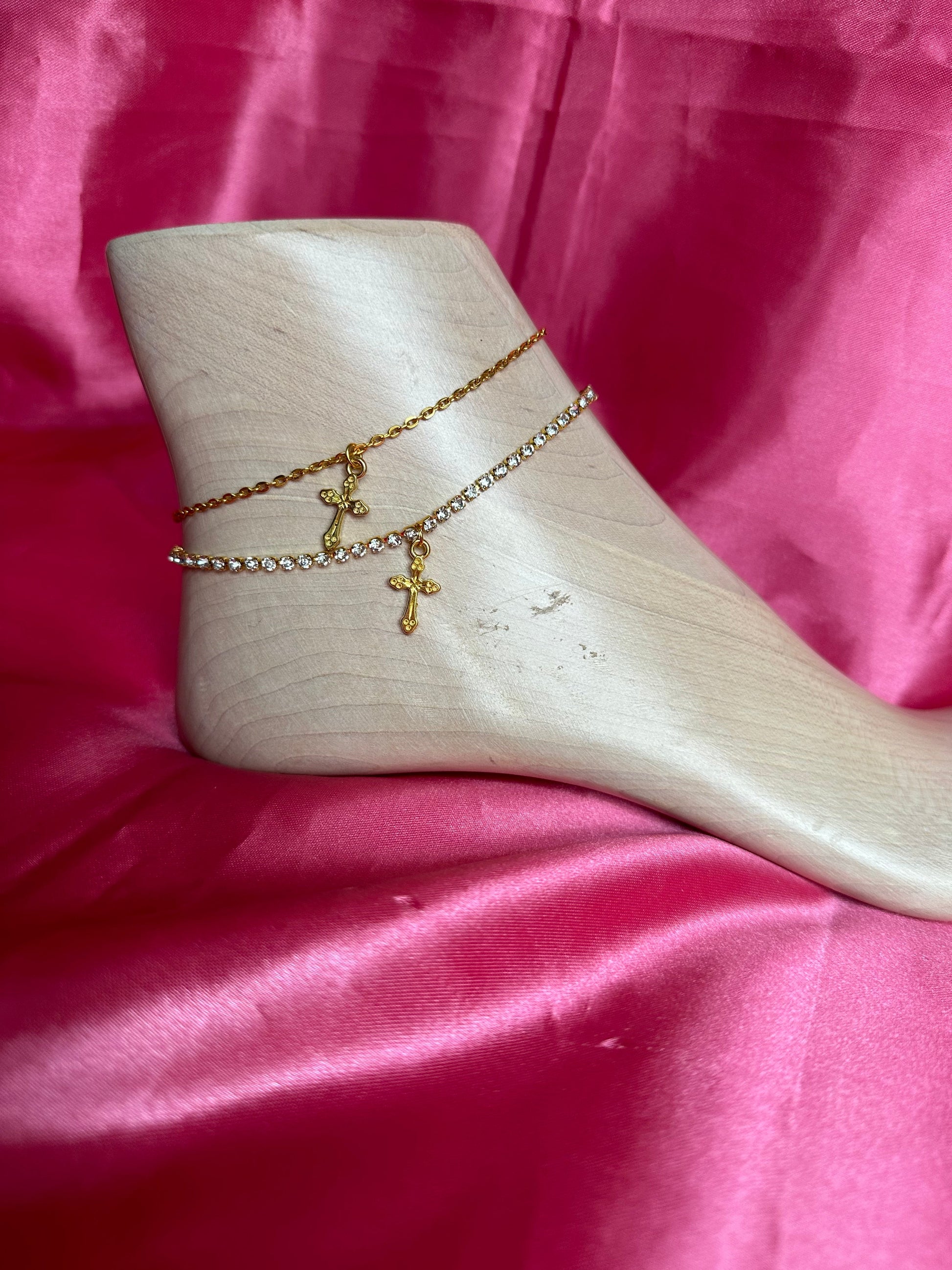 Cross pendant anklet