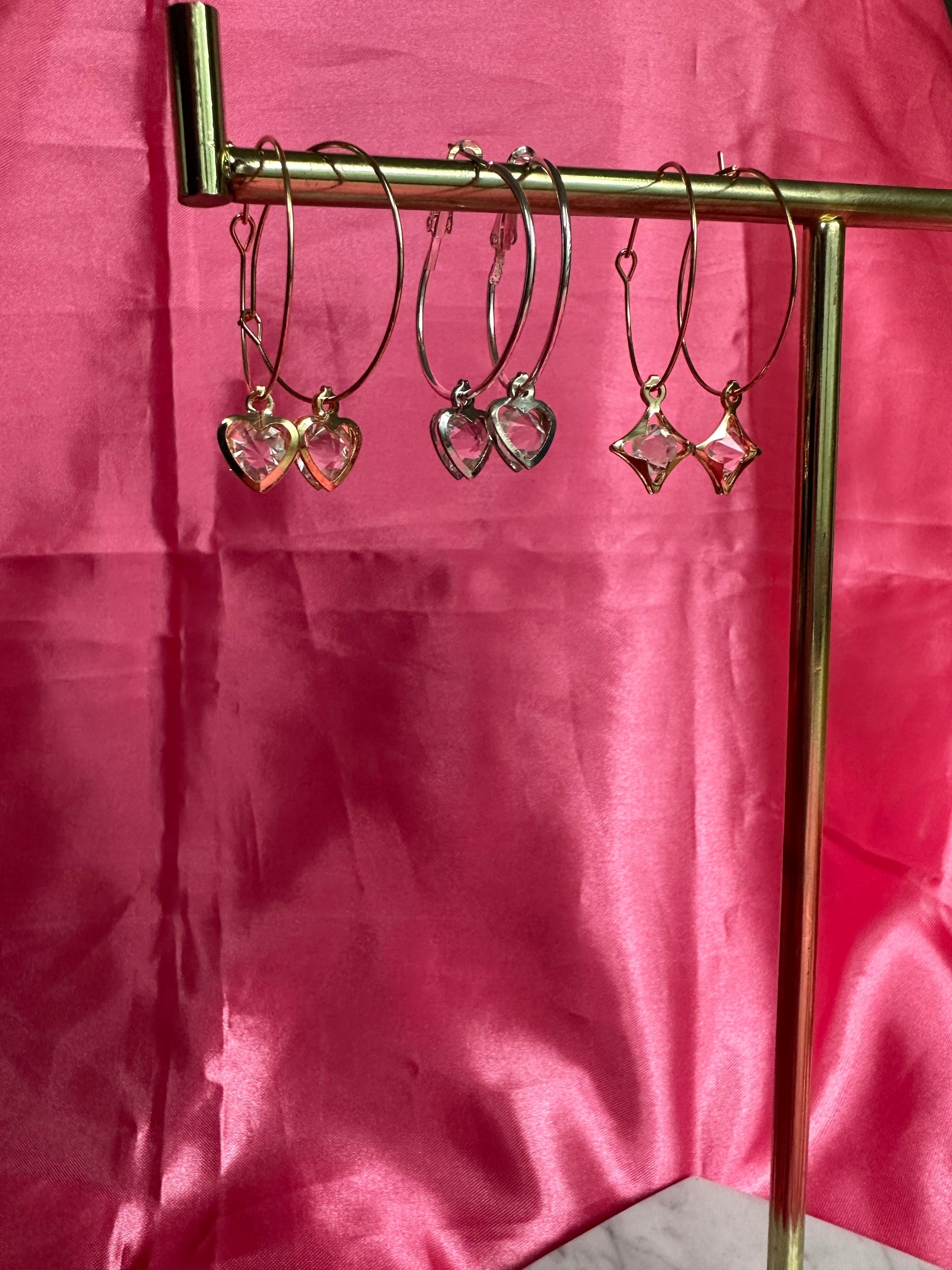 Cute handmade earrings with crystal pendant details.