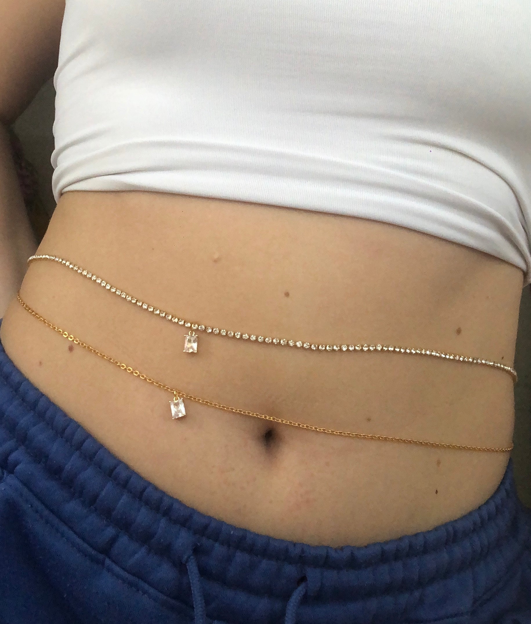 Beautiful handmade belly chain with cute cubic zirconia pendant detail.