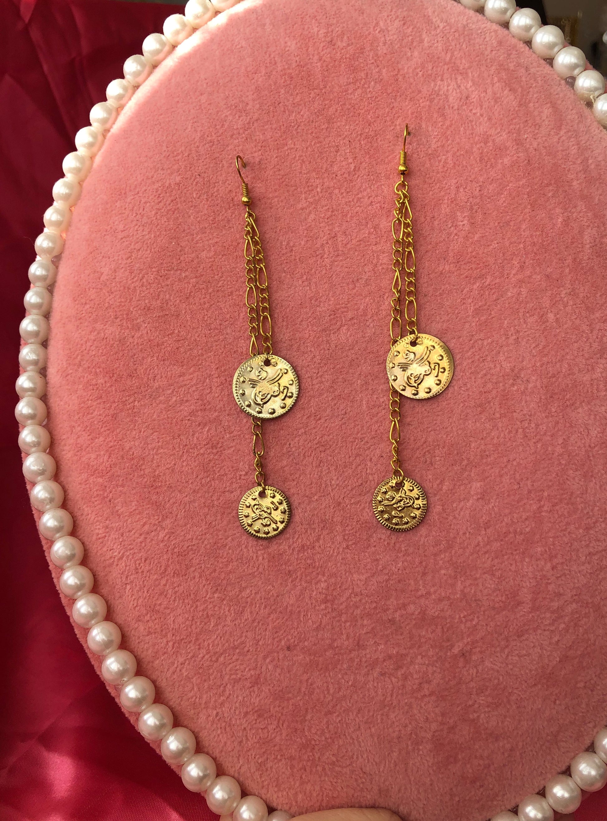 Beautiful handmade earrings with coin pendant details, suitable for casual or night out slay.