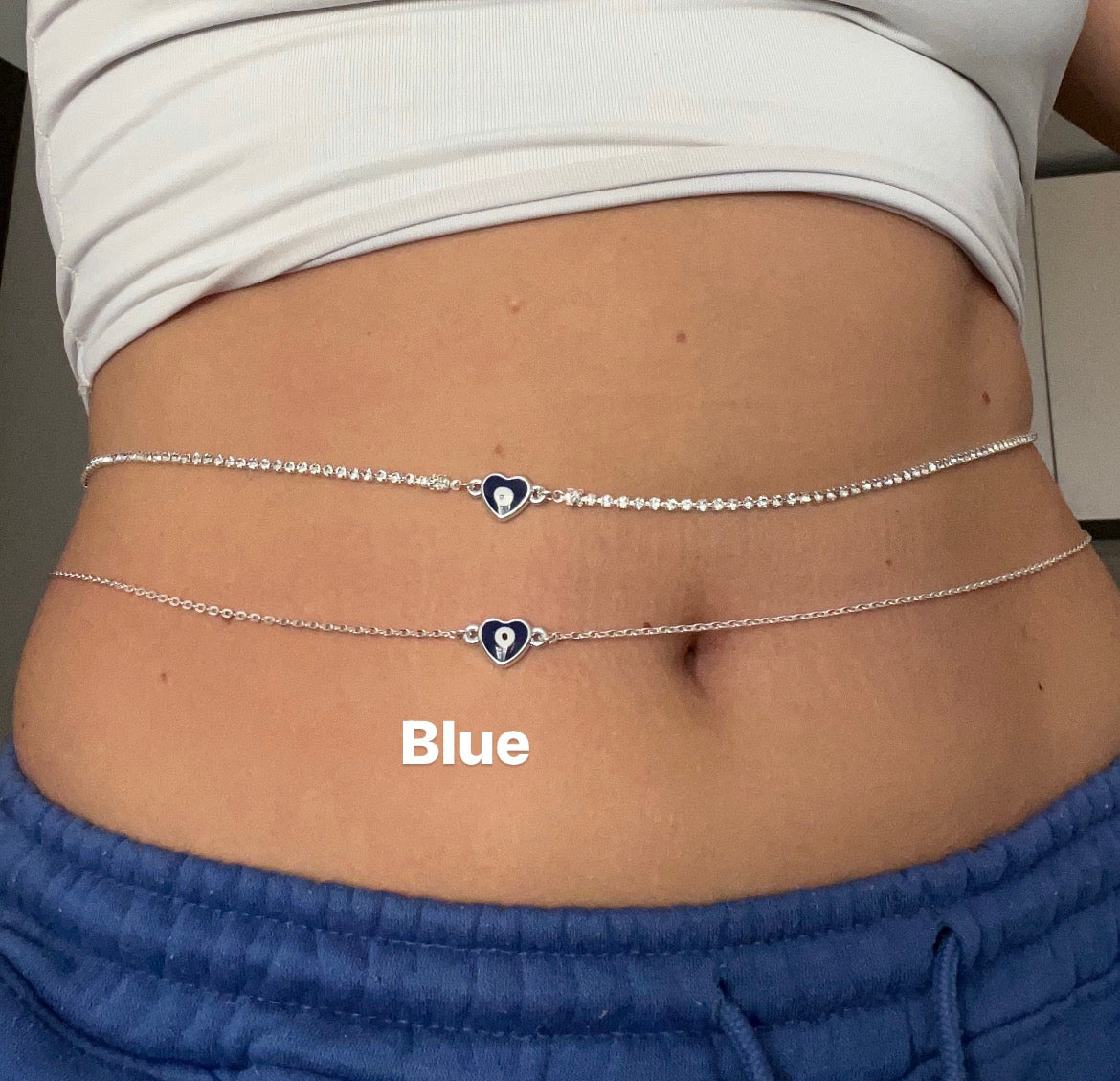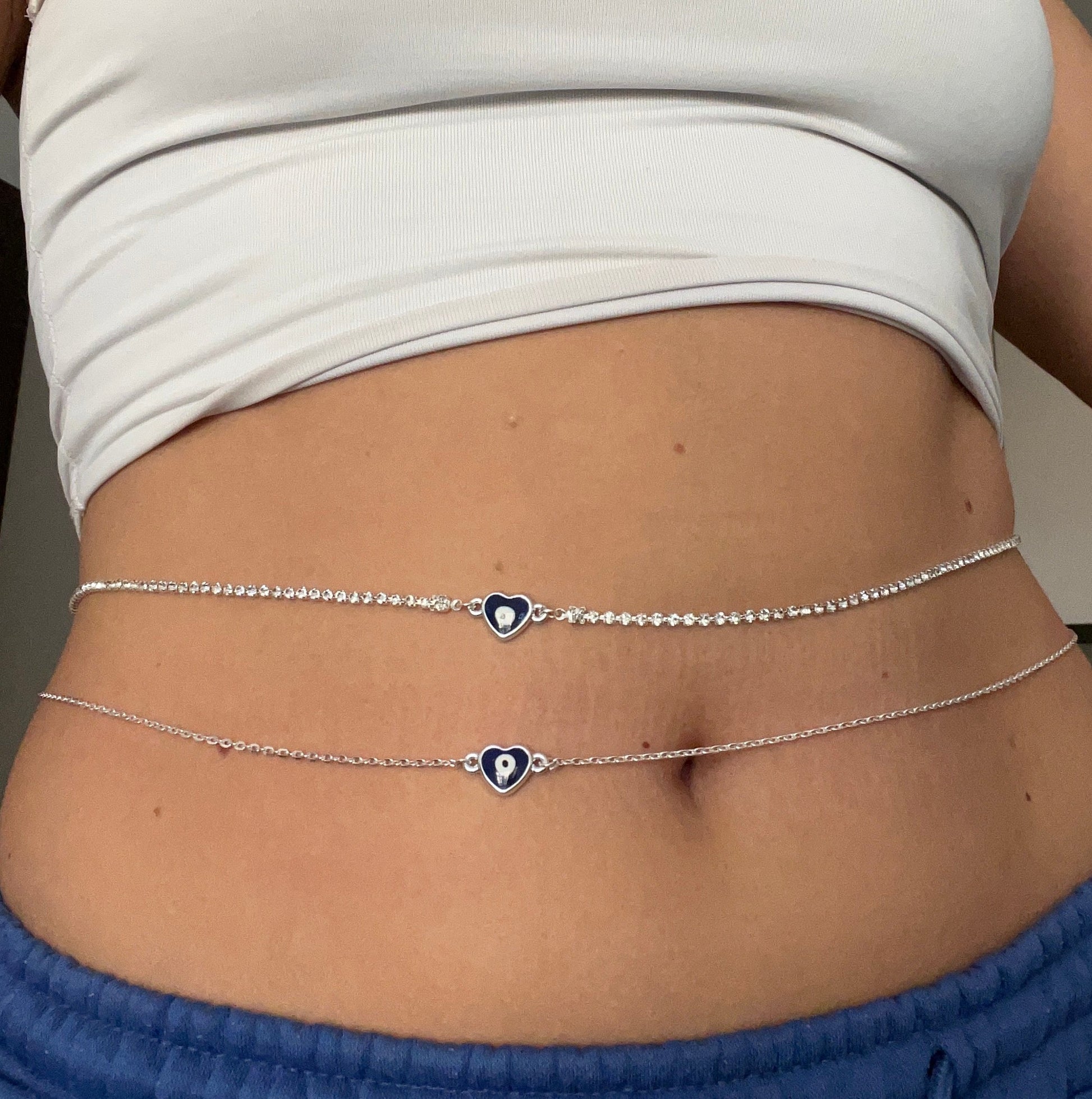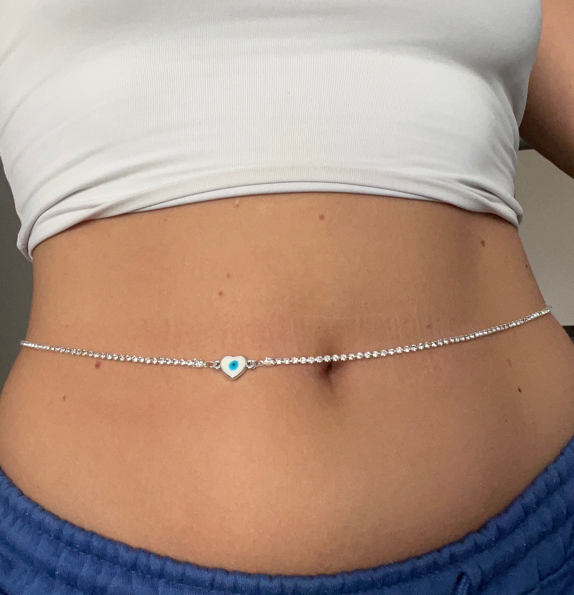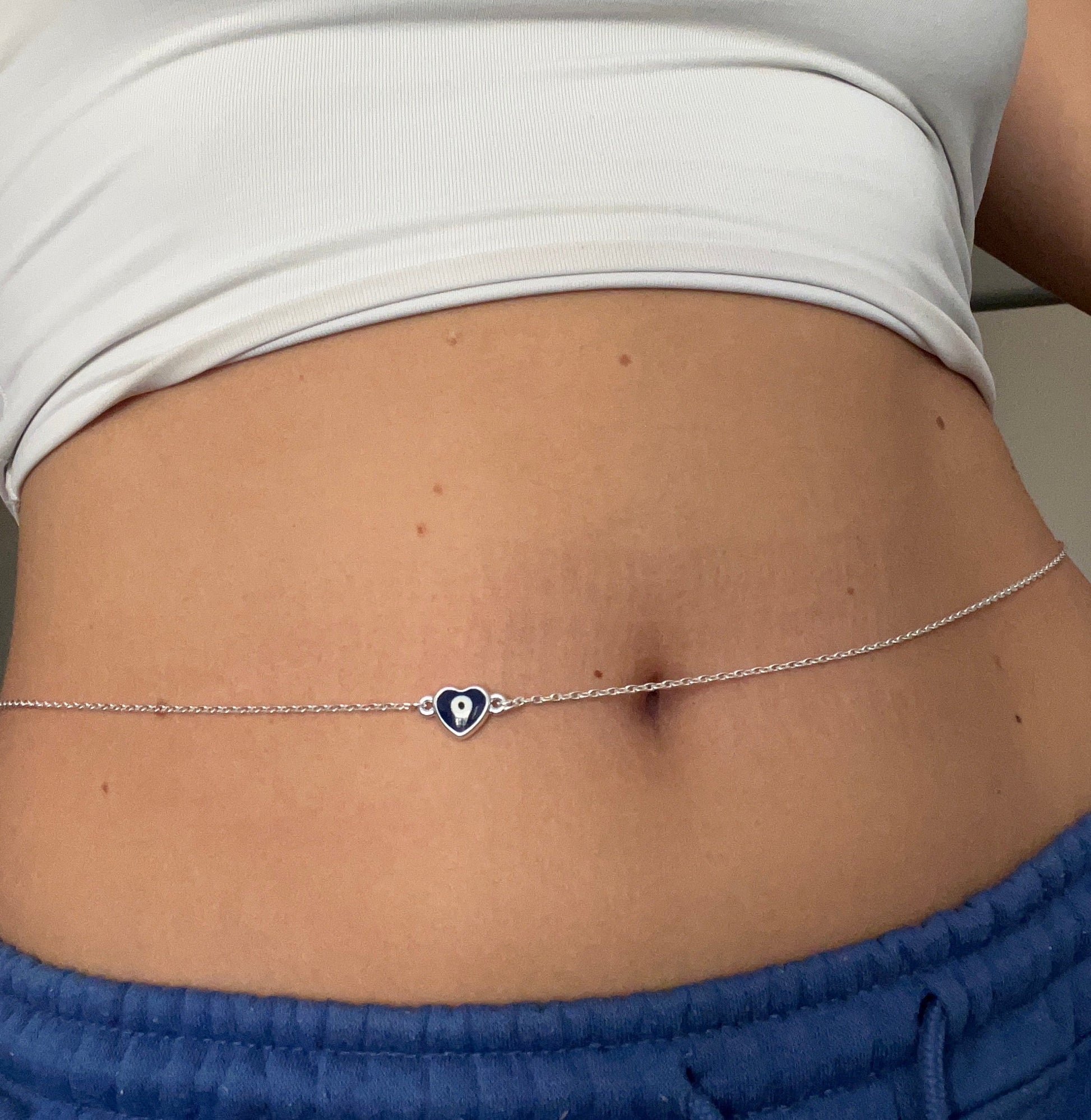 Beautiful handmade belly chain in silver with cute evil eye heart pendant detail.