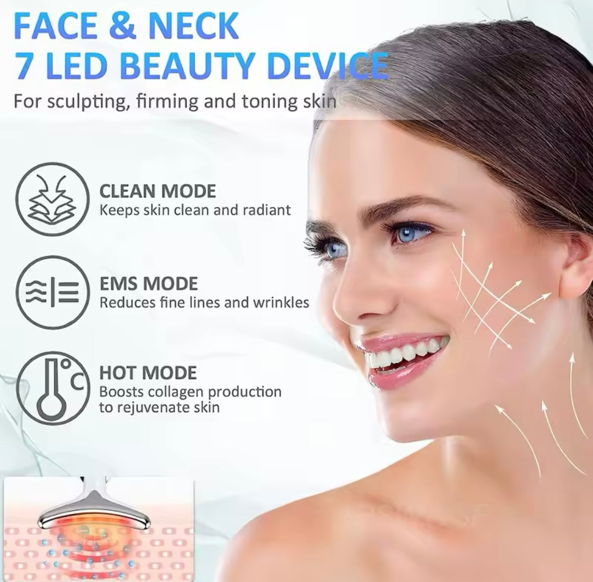 Improve your skin's appearance and glow with our Face & Neck 7 LED beauty device. This powerful device utilizes 7 LED lights to target and treat common skin concerns, such as acne, wrinkles, and hyperpigmentation. Boost collagen production and achieve a brighter, more youthful complexion with this expertly designed and scientifically proven device.
