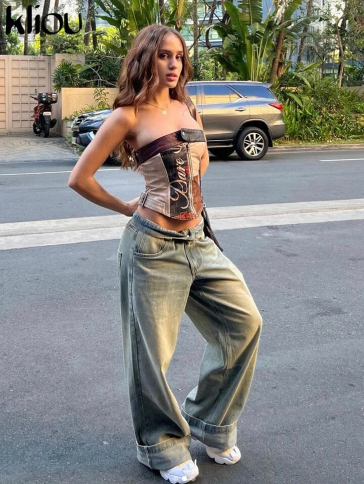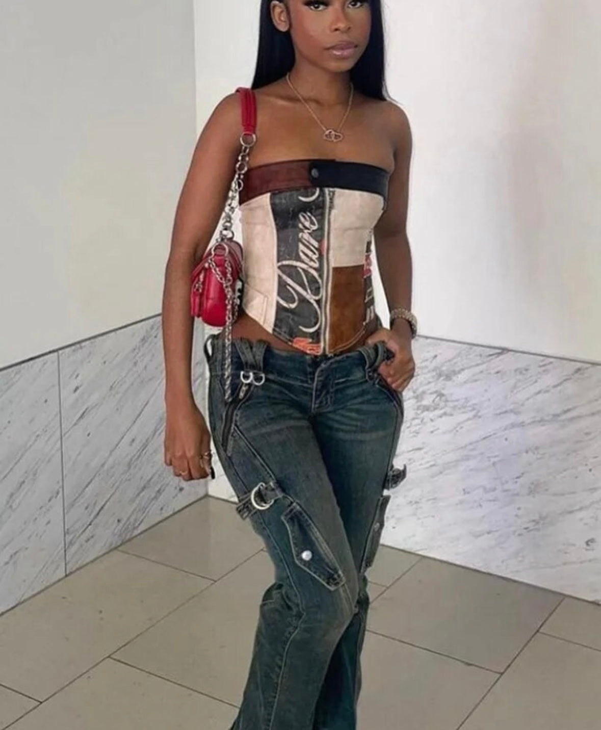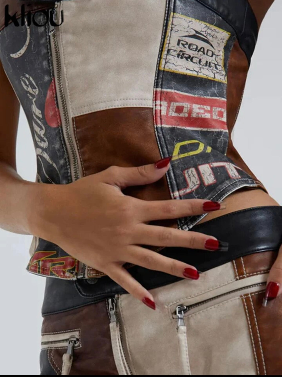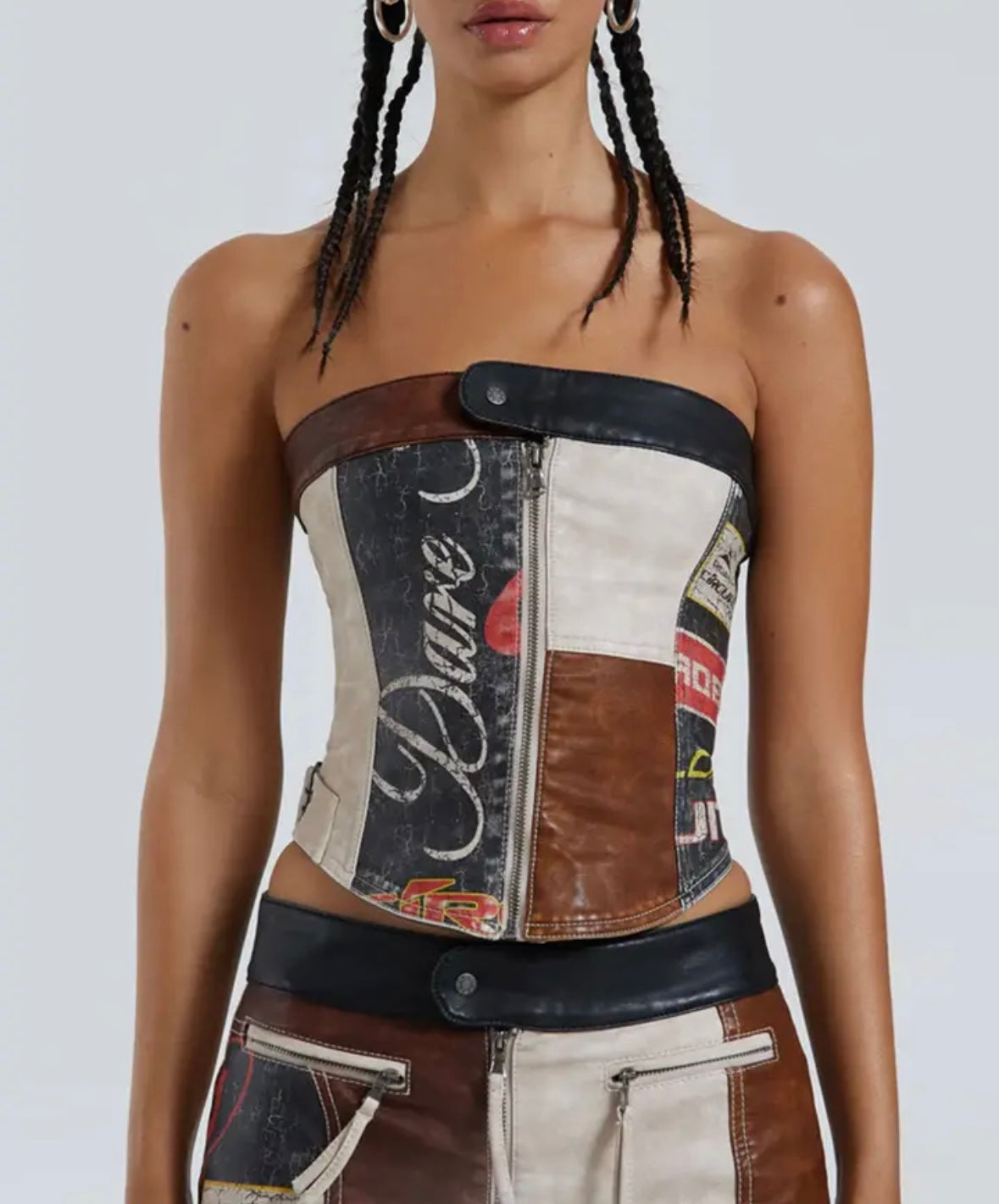 Faux leather patch print bandeau top