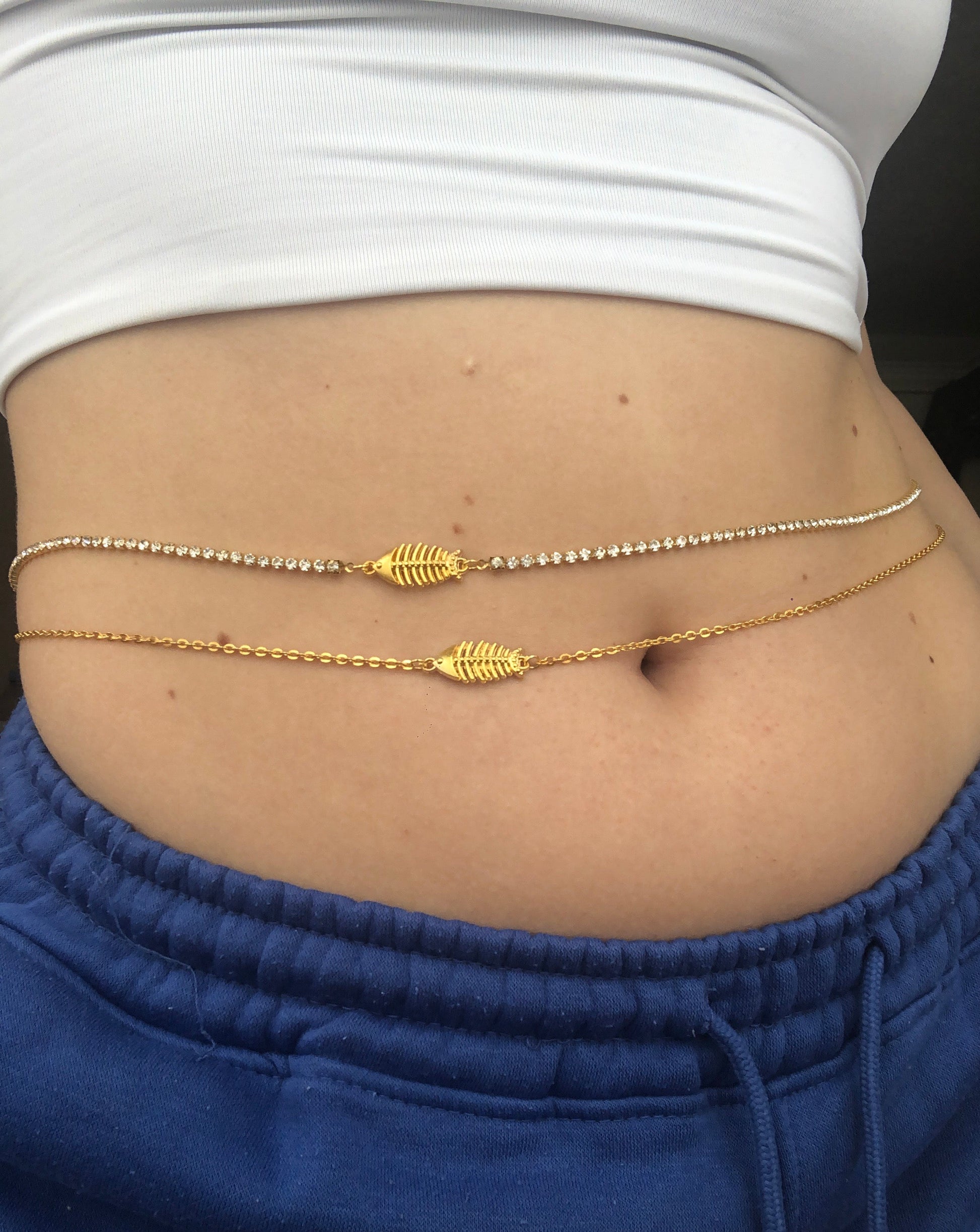 Fish bone belly chain