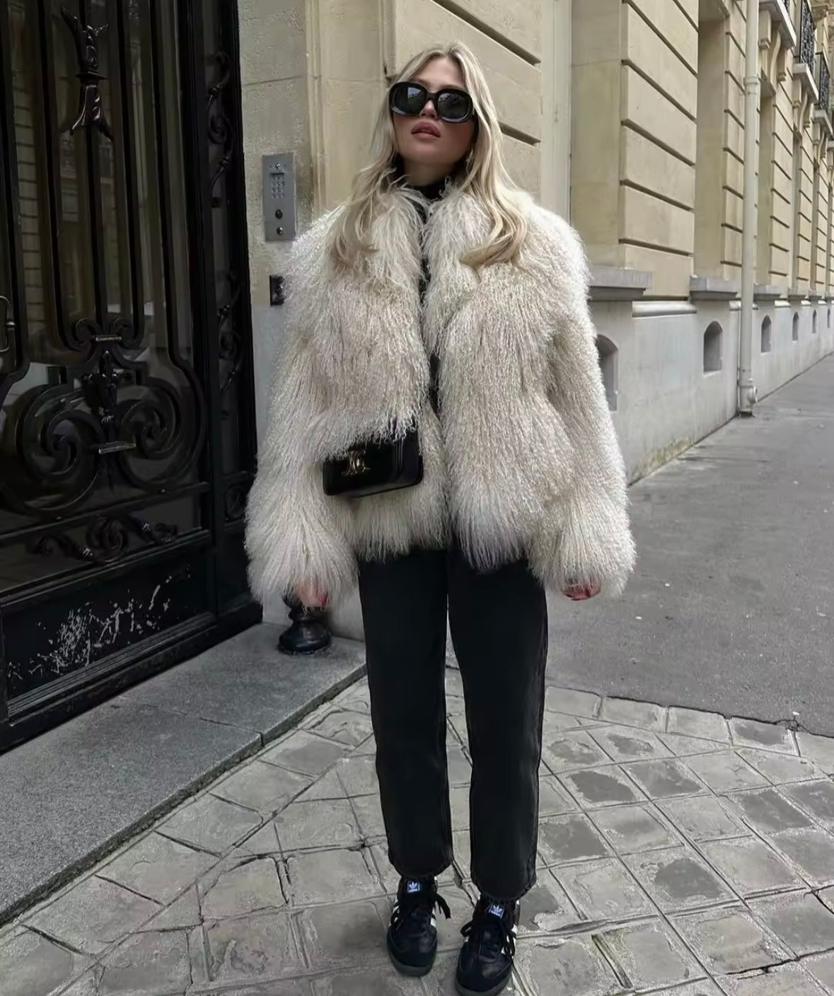 This fully faux fur jacket offers a luxurious and animal-friendly alternative to traditional fur jackets. With its soft and cozy texture, you'll stay warm and stylish while being environmentally conscious. Made from 100% polyester, this jacket is durable and easy to care for.