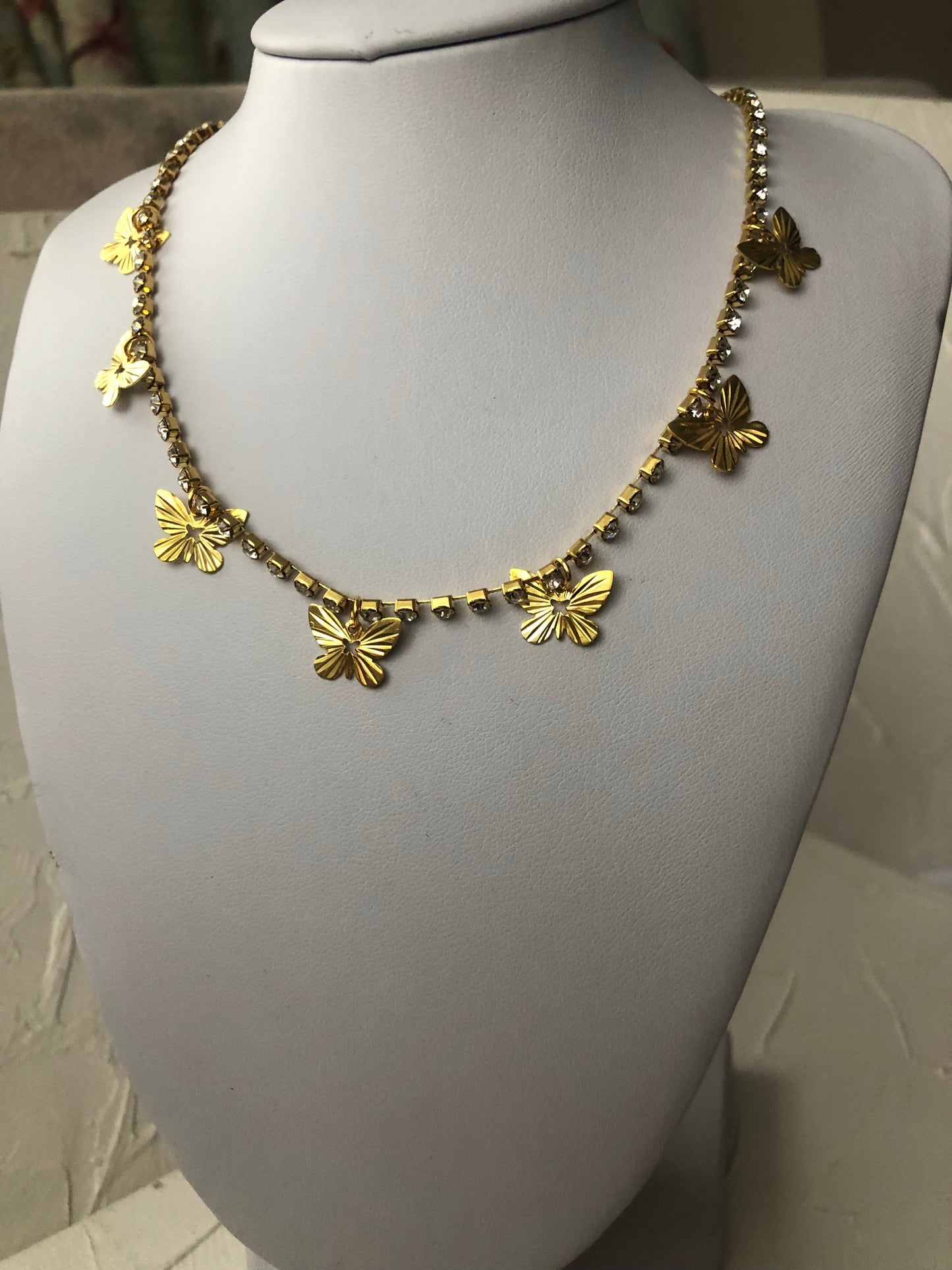 Beautiful handmade necklace with butterfly pendant details.