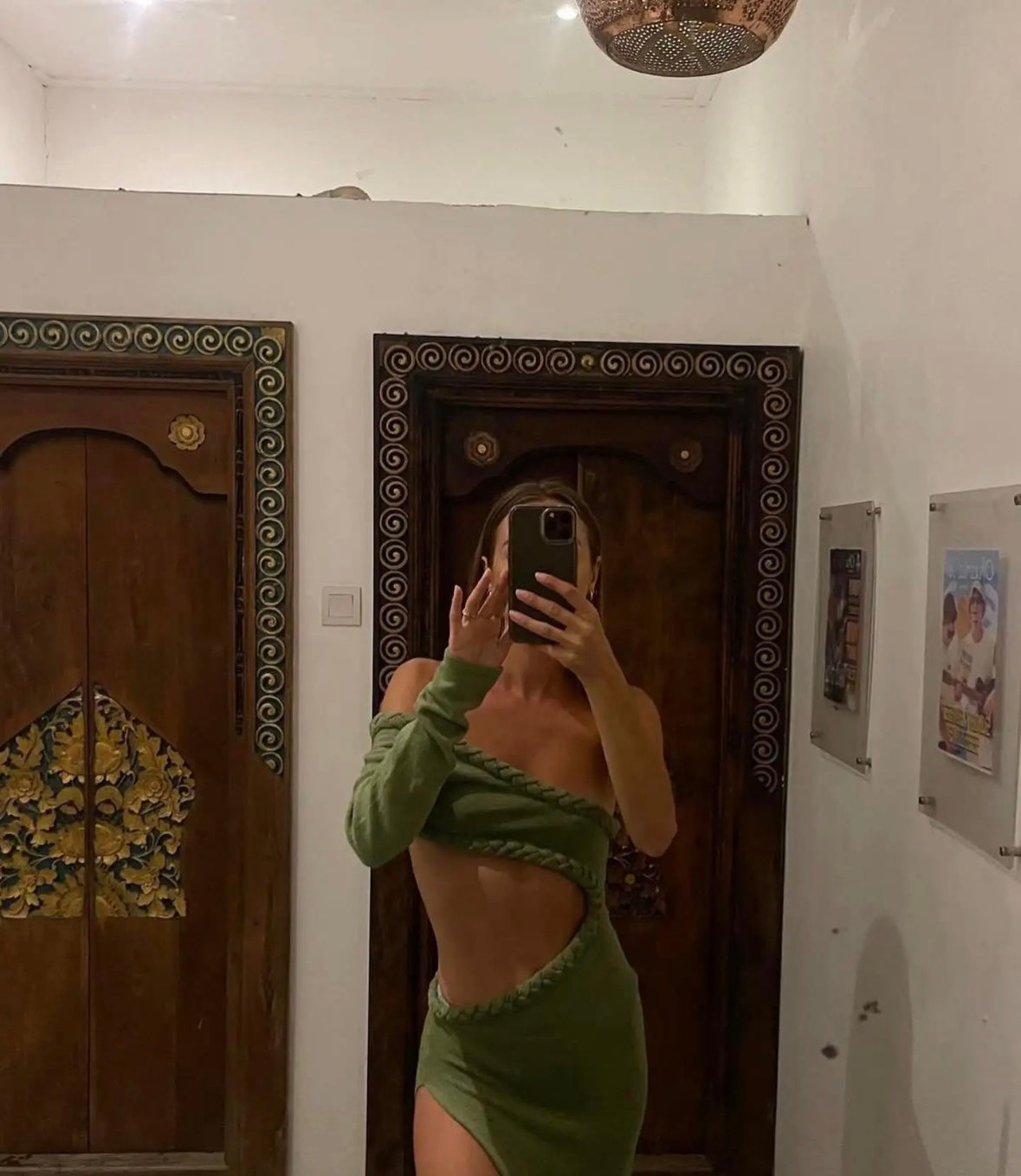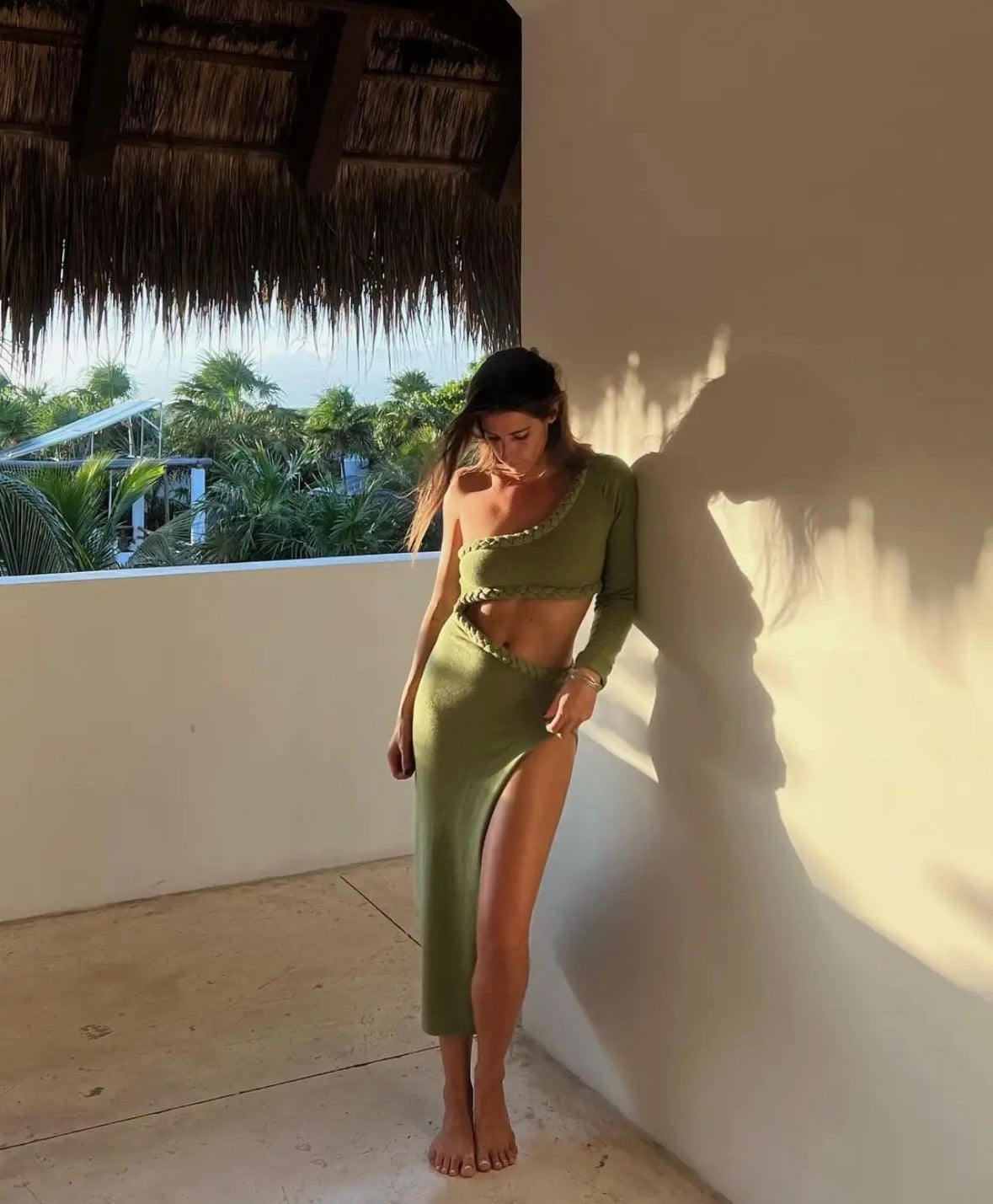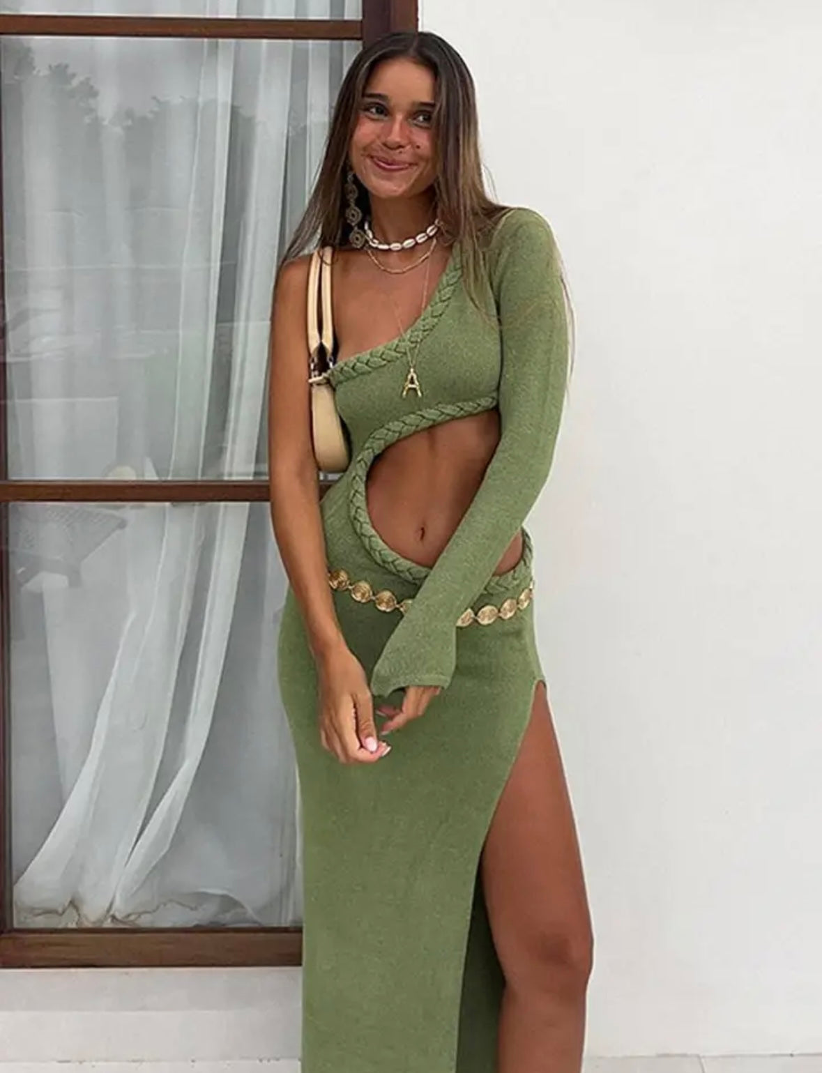 Green cut out summer dress