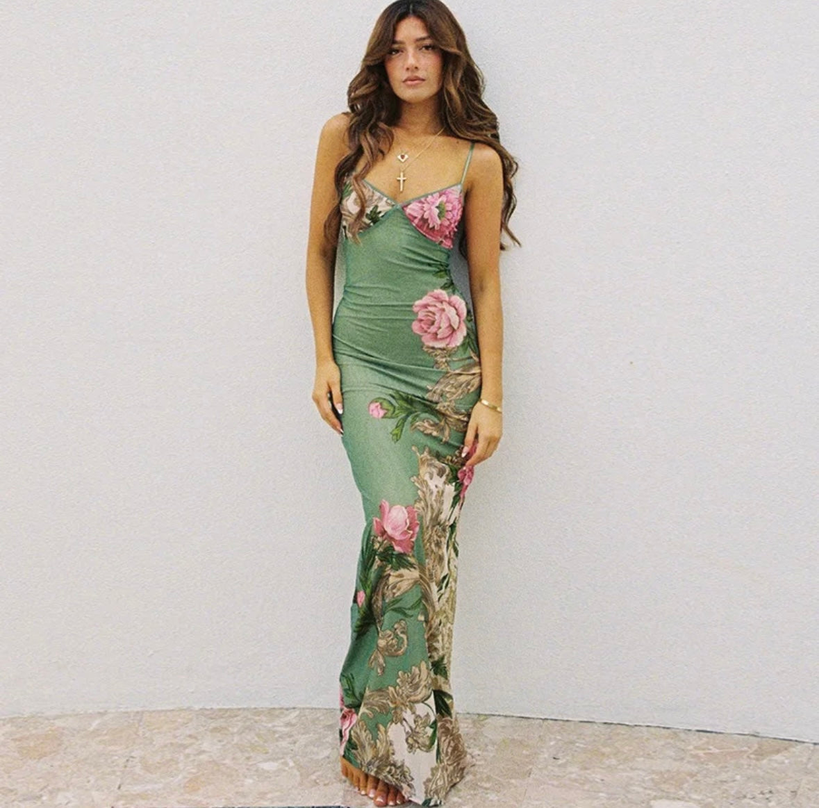 Introducing our stunning Green Flower Print Maxi Summer Dress, perfect for any summer occasion. Made with a comfortable and breathable fabric, this dress features a vibrant green floral print that is sure to turn heads. Its maxi length adds an elegant touch, making you stand out in the crowd. Stay stylish and comfortable all summer long in this must-have dress.
