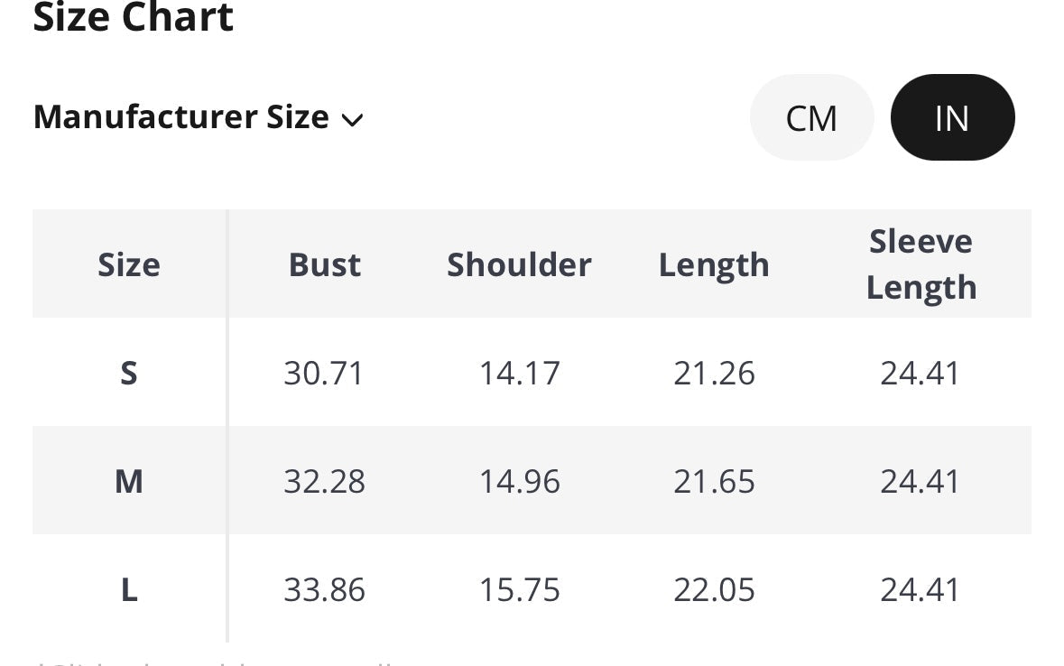 Available in S, M and L
