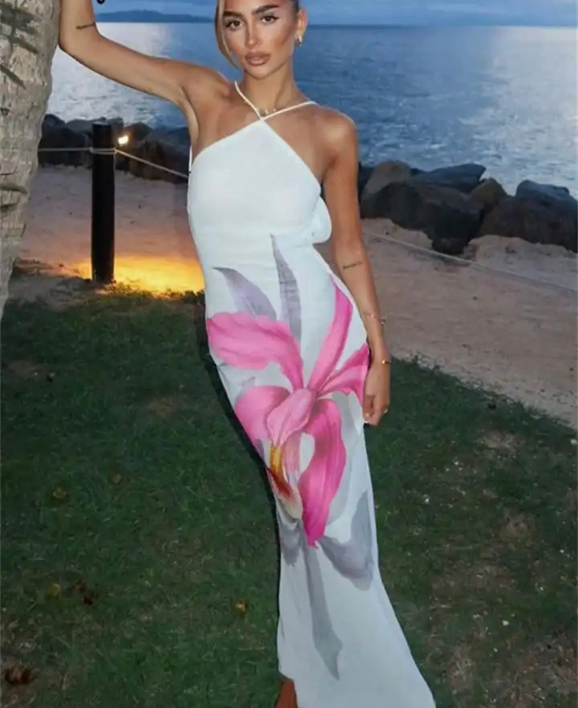 Elevate your style with our Halter Flower Maxi Dress. Featuring a halter neck and backless design, this dress is adorned with a beautiful floral print. Perfect for any occasion, it effortlessly combines comfort and elegance. Embrace the confidence and grace that comes with our carefully crafted dress.