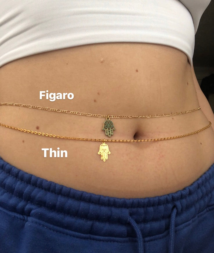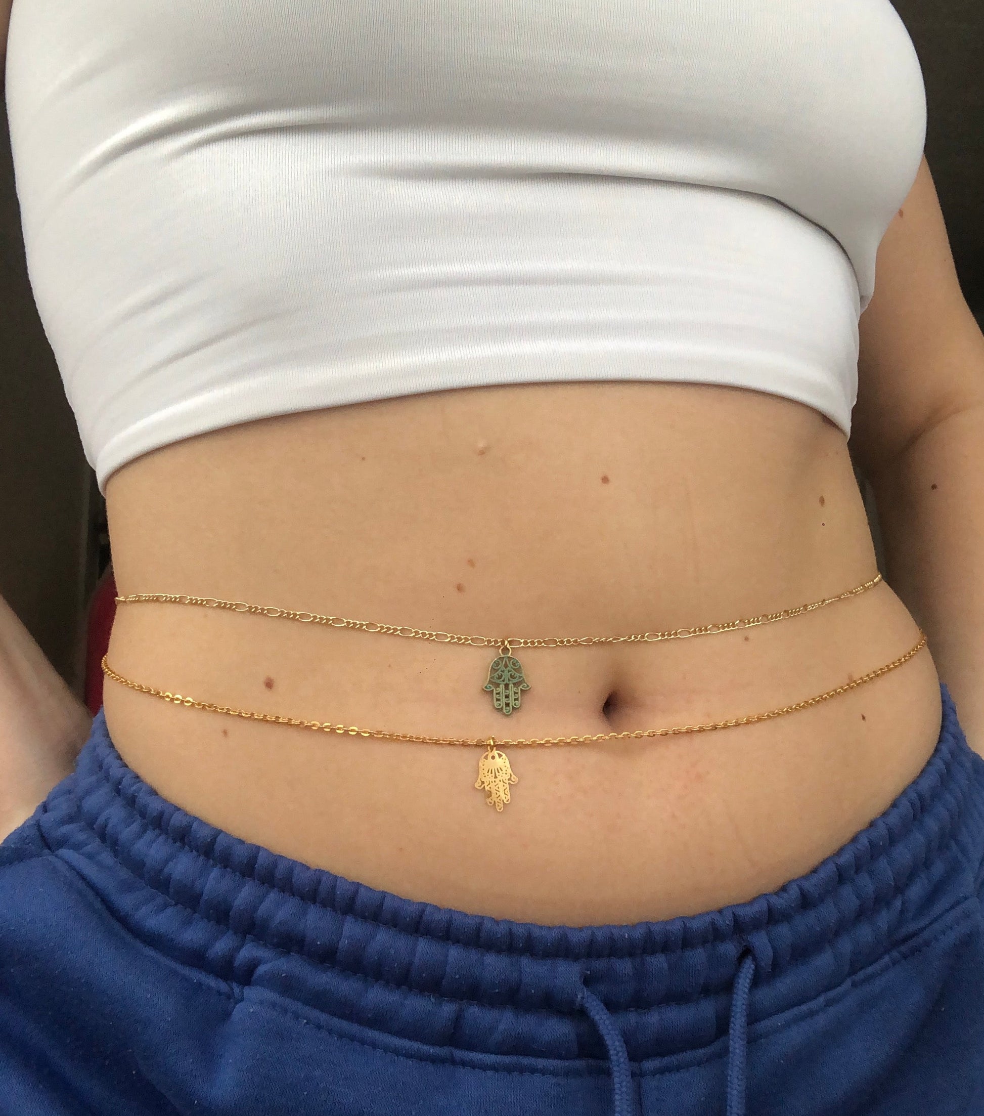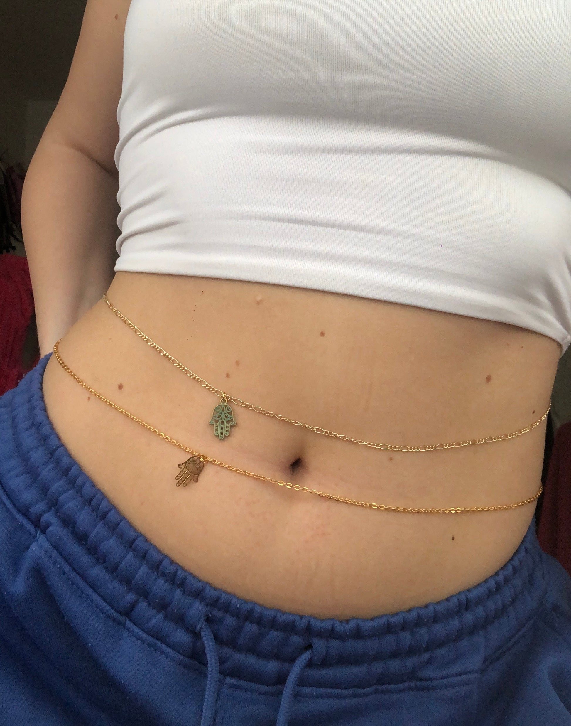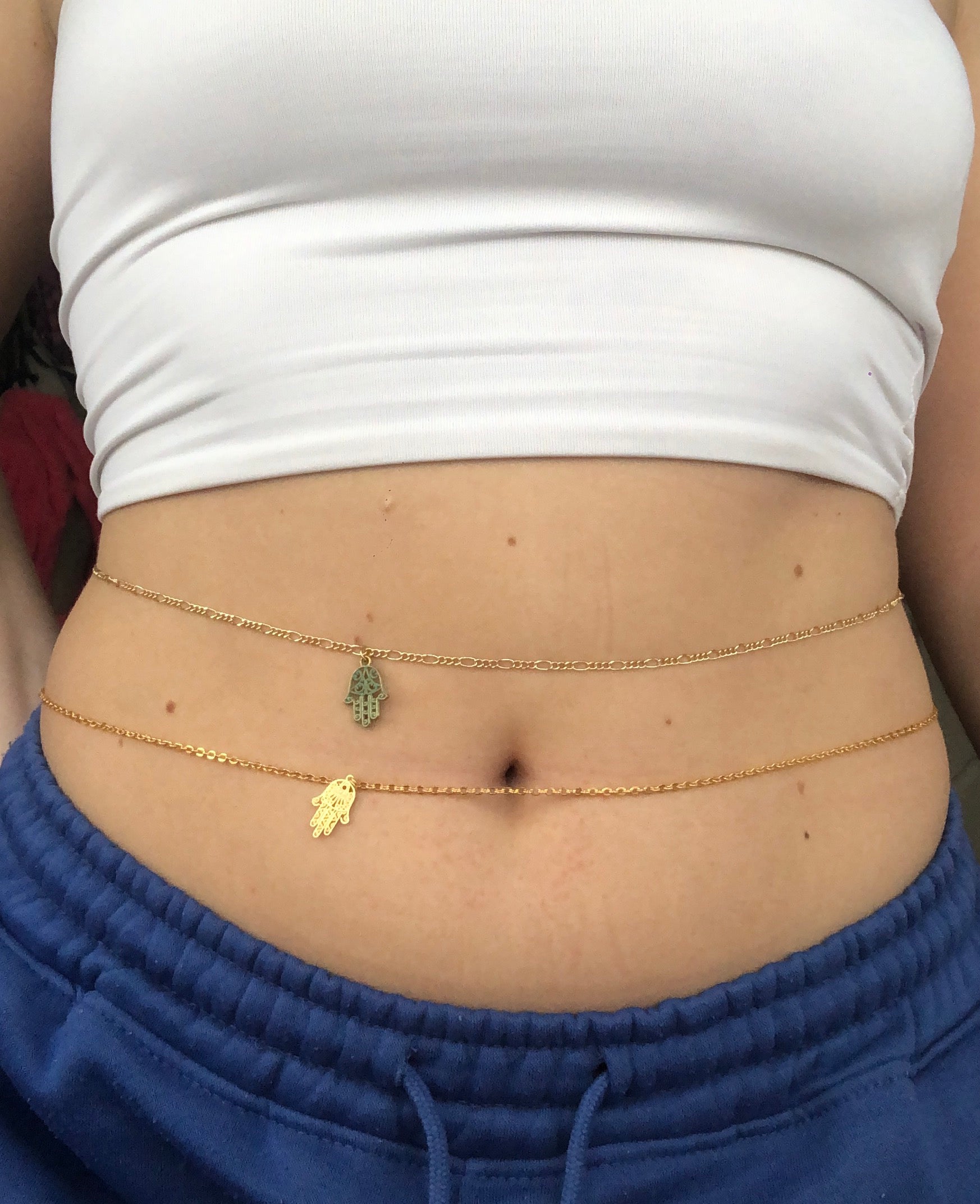 Beautiful handmade belly chain with cute Hamsa hand pendant detal.