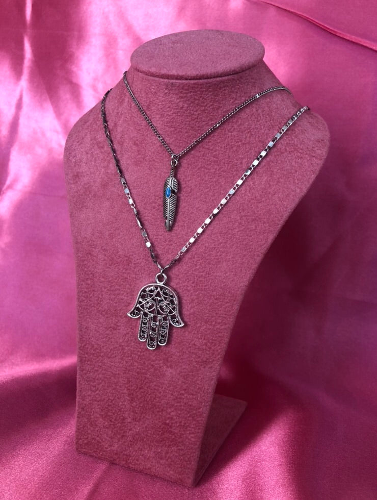 Beautiful handmade necklace with Indian leaf pendant detail.