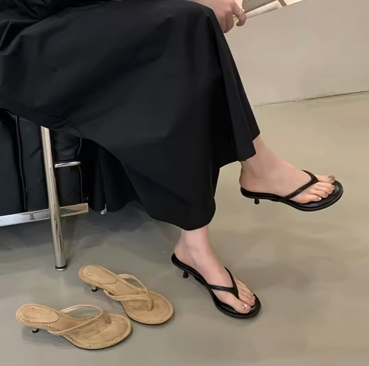 Kitten heel flip flops