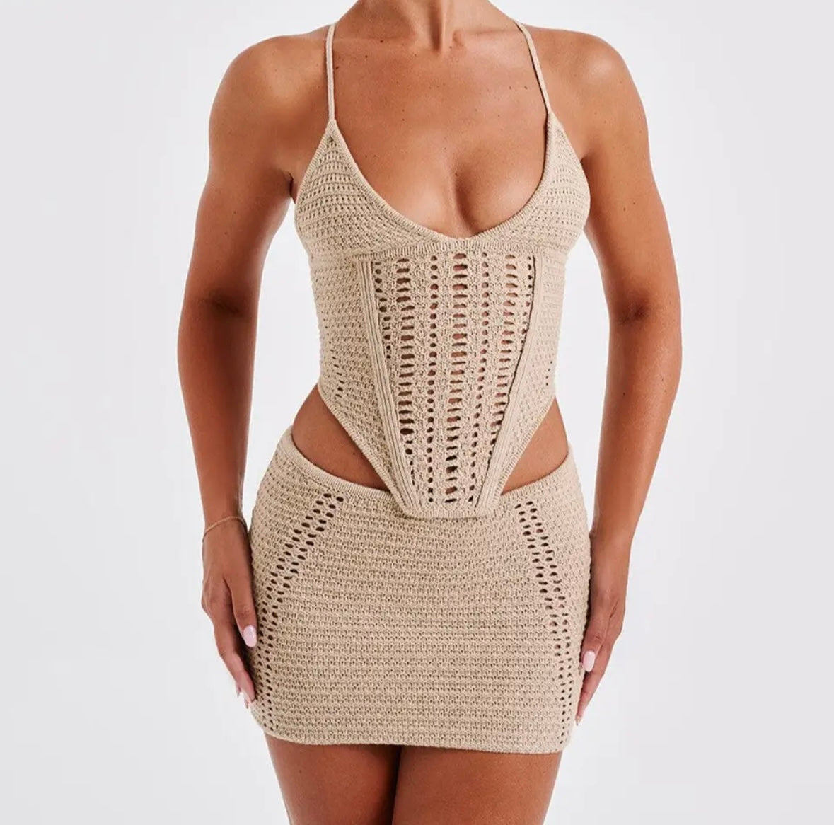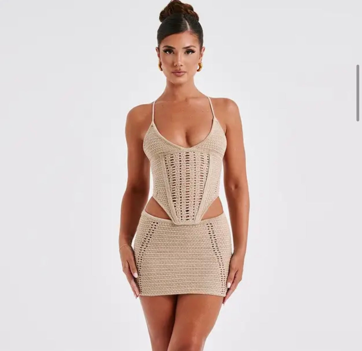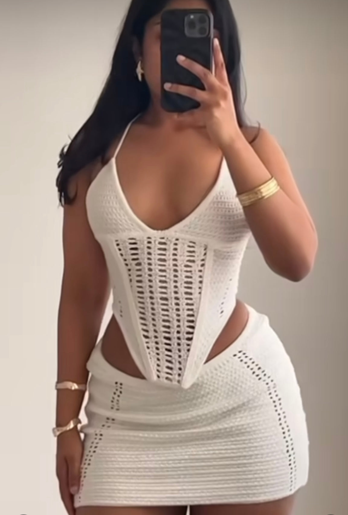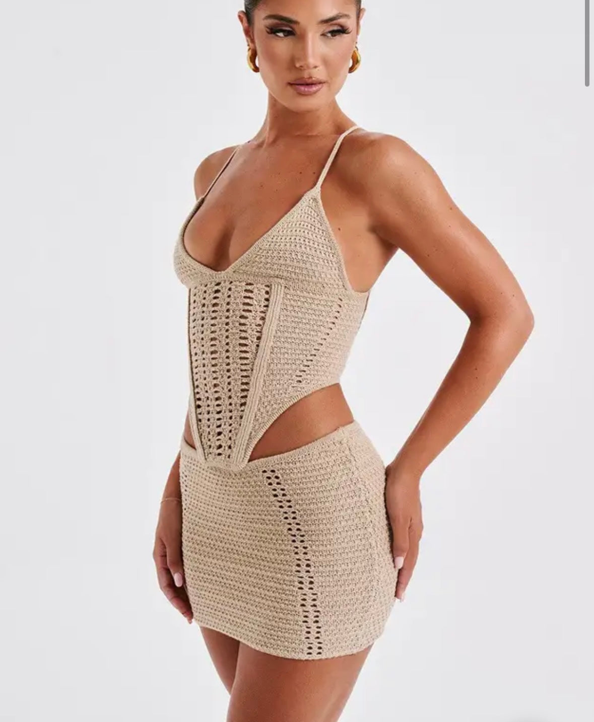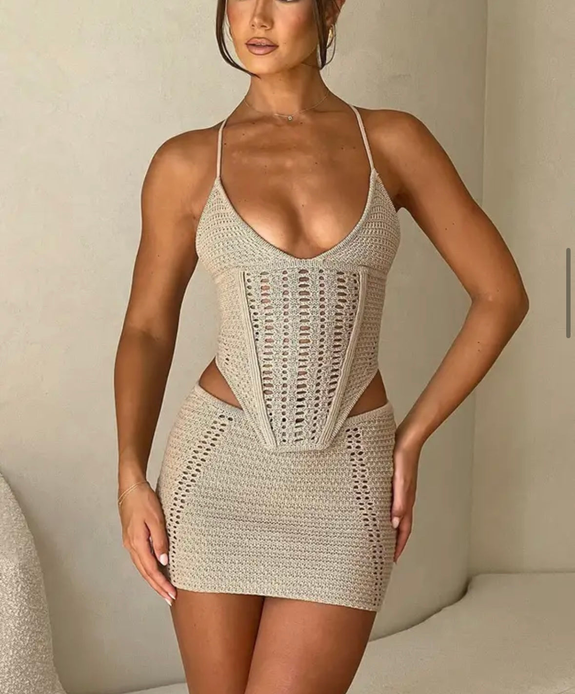 This knit co ord set is perfect for summer holidays. With a sexy and stylish design, it offers a comfortable and flattering fit. It is suitable for warm weather and can be dressed up or down. Elevate your summer wardrobe with this must-have set.