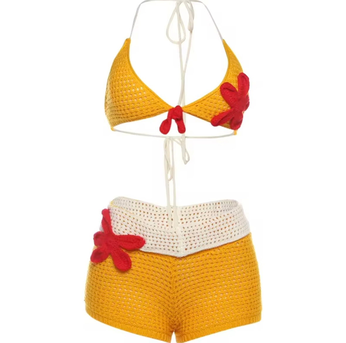 This beautifully designed knit two piece set is perfect for any occasion. The vibrant yellow color and flower print bring a touch of brightness to your wardrobe. Made with high-quality knit material, this set offers both comfort and style. Elevate your fashion game with this must-have set.