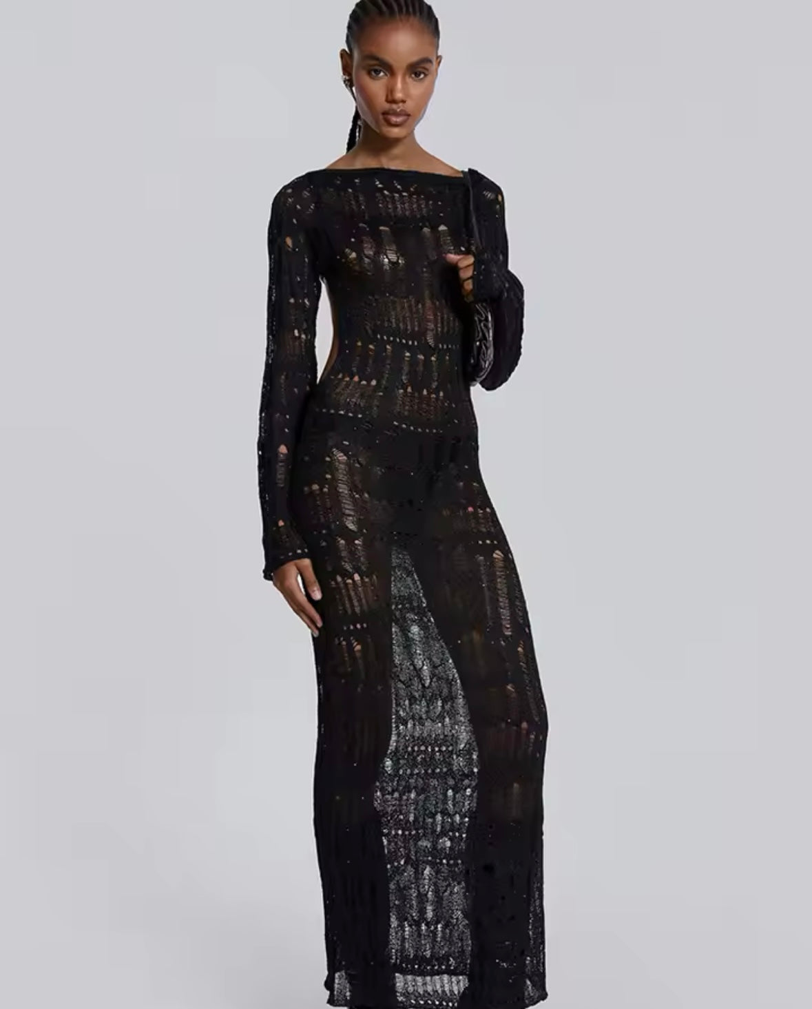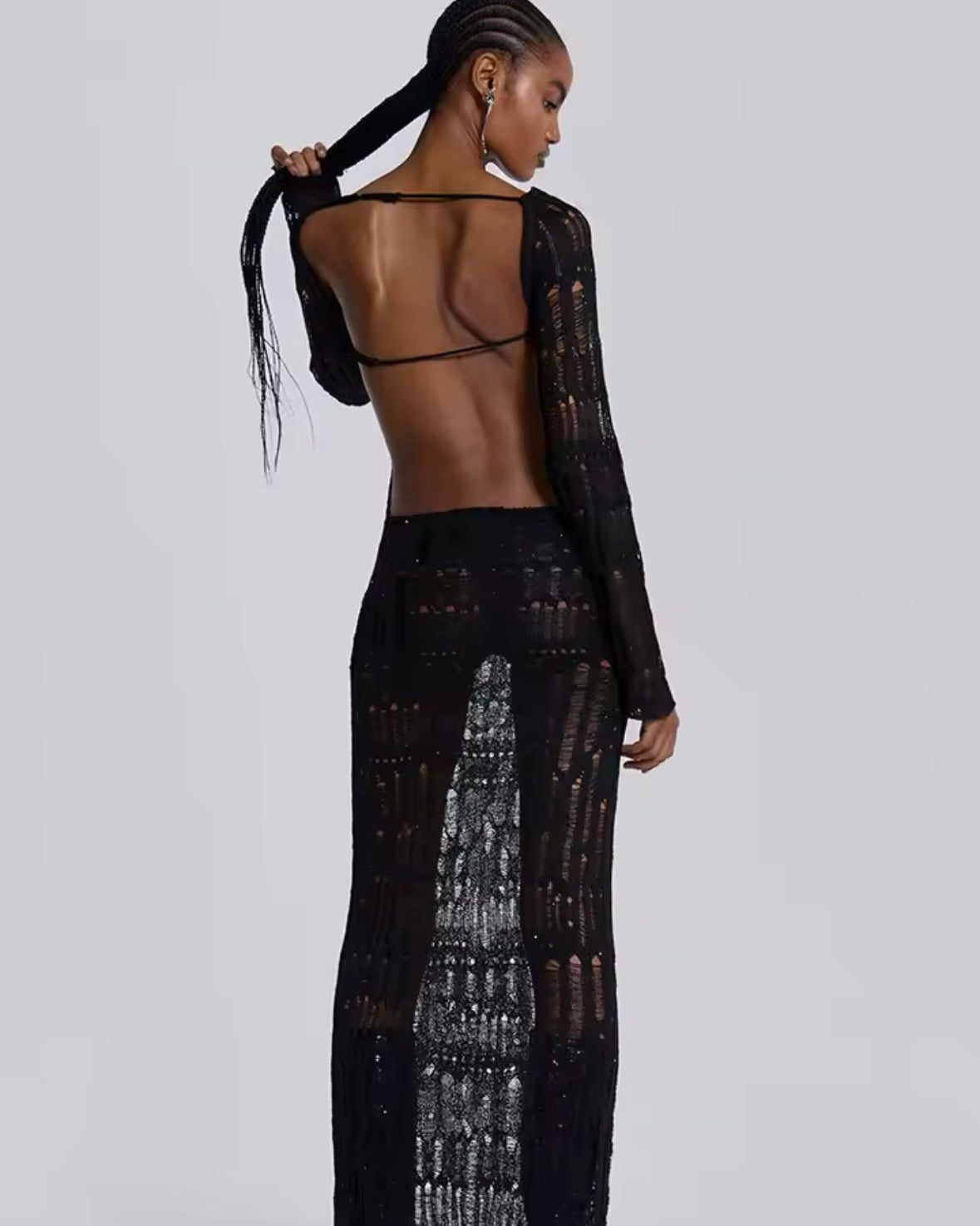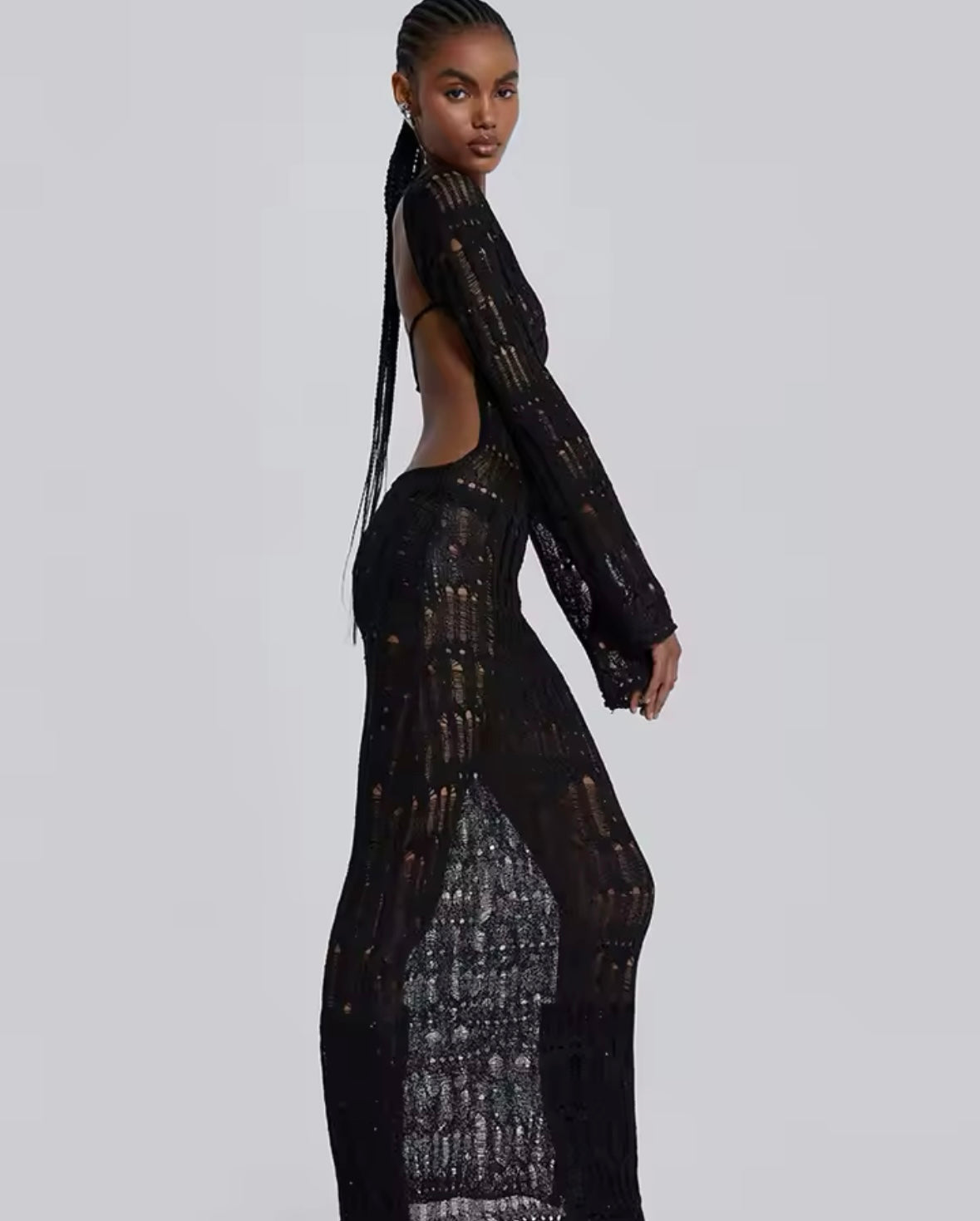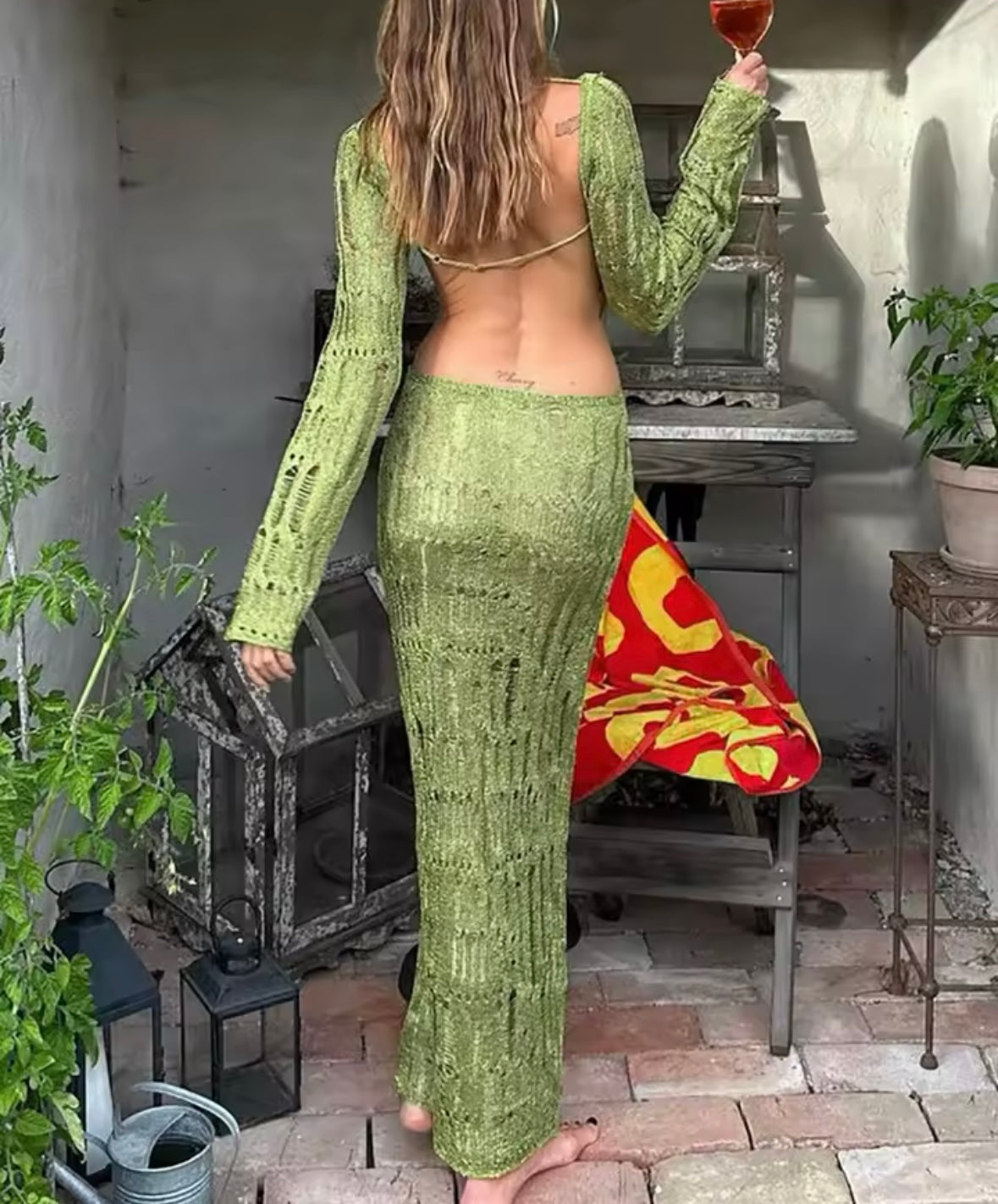 Expertly designed and crafted with an intricate knitted crochet pattern, our backless maxi dress showcases your natural beauty with a touch of elegance. Its soft, lightweight fabric wraps you in comfort while its stylish design highlights your curves. Perfect for any occasion, this dress is a must-have in your wardrobe.