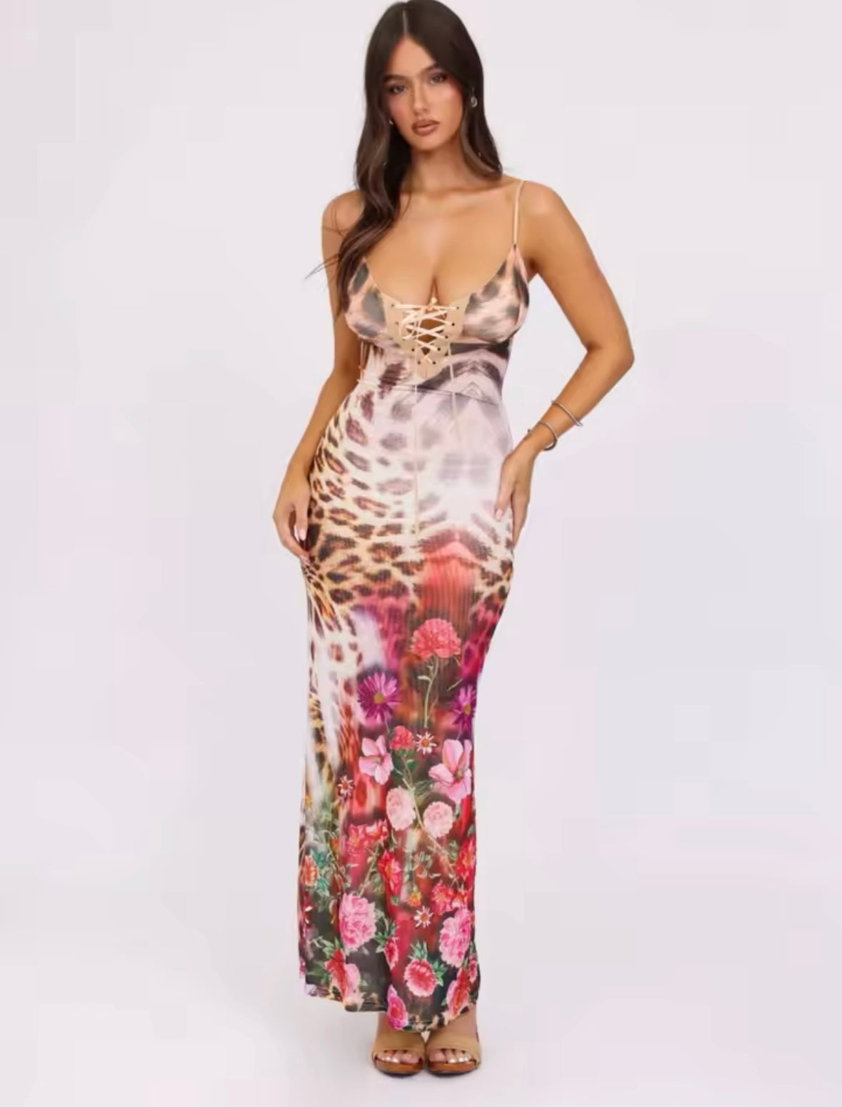 Leopard roses print maxi dress