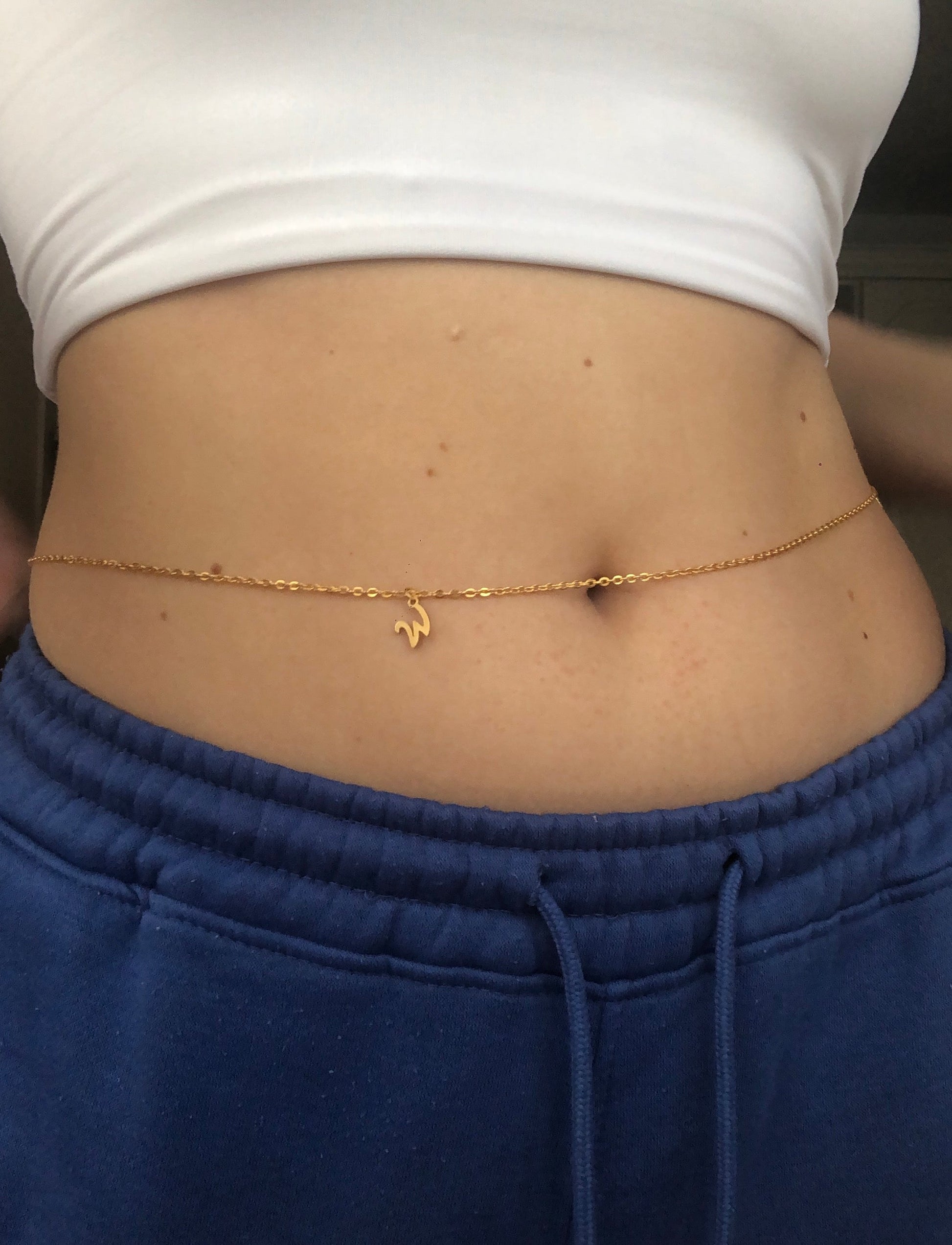 Beautiful handmade belly chain with letter pendant details
