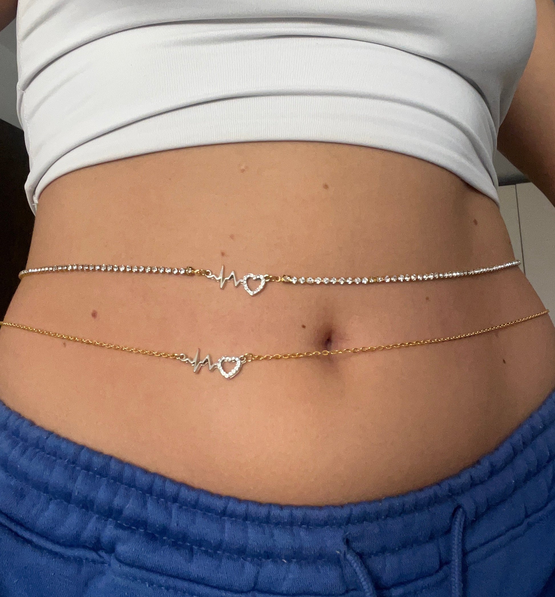 Beautiful handmade belly chain with cute pulse pendant detail.