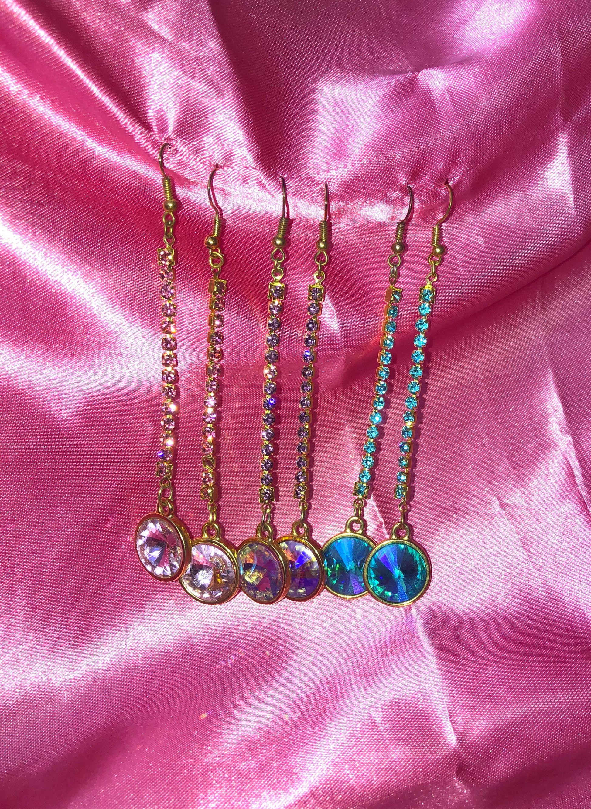 Beautiful handmade earrings made out of rhinestone chain and 14 mm crystal elements.