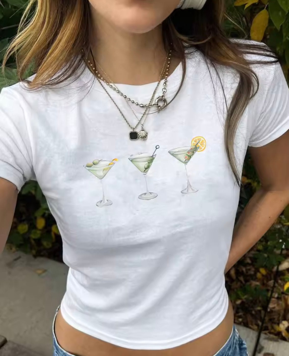 Elevate your style with our Martini T-shirt, featuring a sleek and sophisticated martini print designs. Show off your impeccable taste with this must-have addition to your wardrobe.
