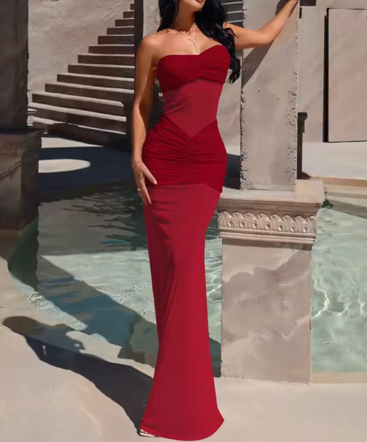 This elegant maxi dress features a bandeau neckline and delicate mesh fabric, creating a stunning and versatile piece for any formal occasion. The bandeau style showcases your shoulders and the flowy mesh fabric adds a touch of femininity to your look. Embrace your inner fashionista with this must-have dress.