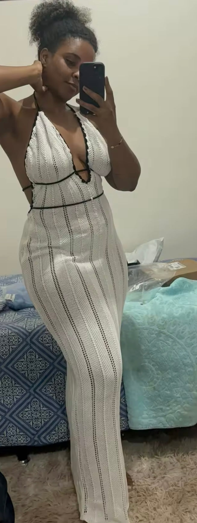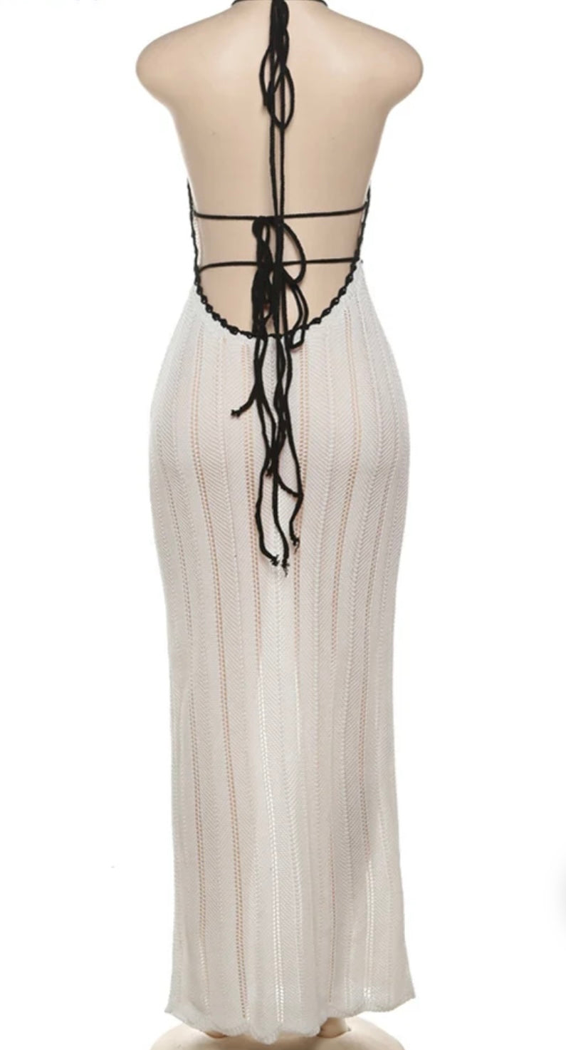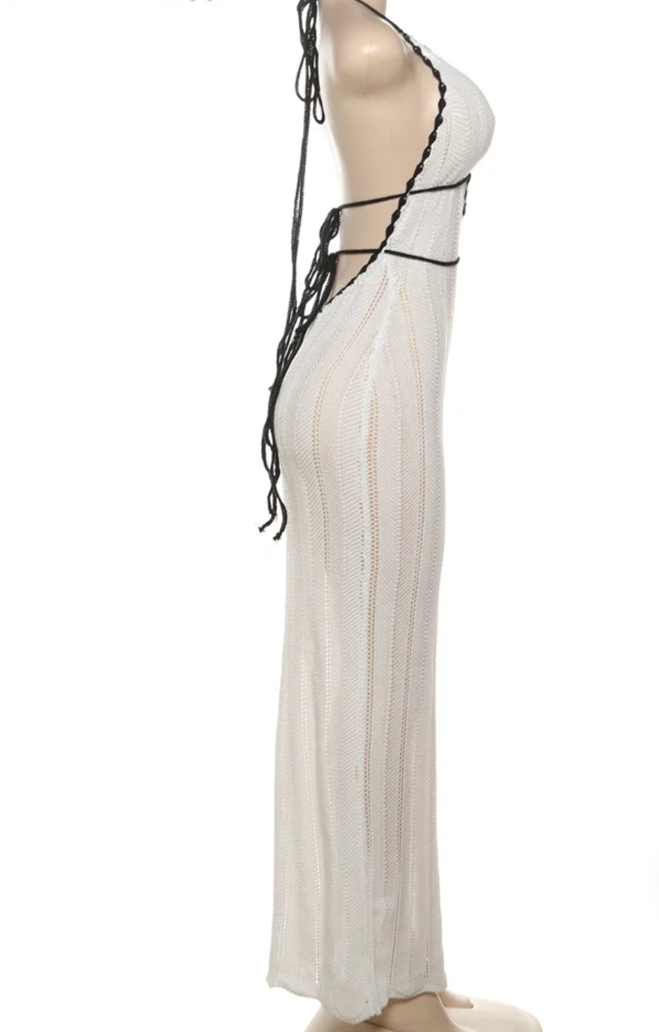 This white maxi knit beach dress is a must-have for any beach day. Its flowing design provides maximum comfort and style, making it the perfect addition to your summer wardrobe. Crafted with soft, lightweight material, it's perfect for lounging or strolling along the shore. Enhance your beach experience with this versatile dress.