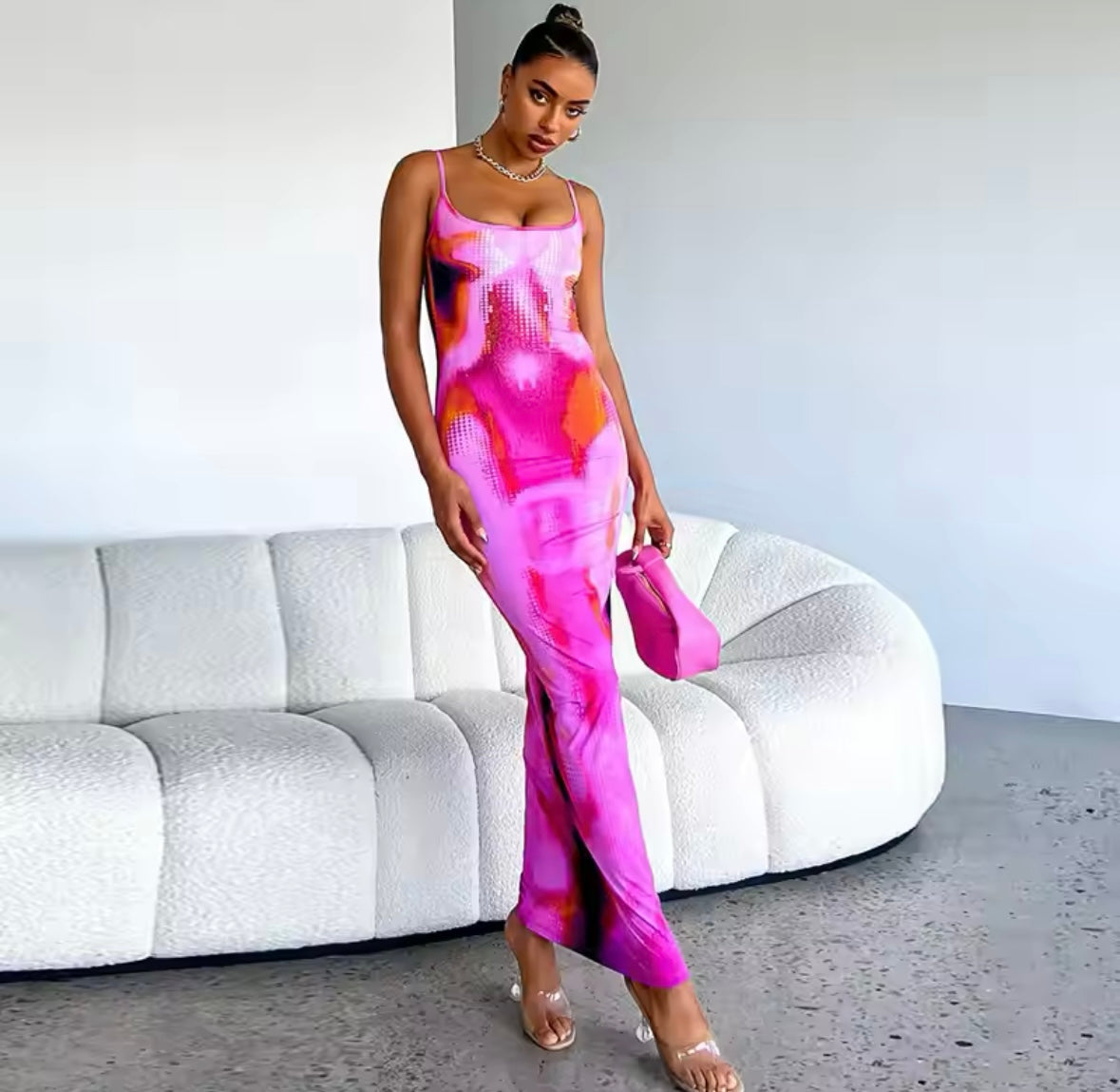 This Maxi print dress is the perfect addition to your wardrobe. Made with high-quality materials, it features a stunning print design that will make you stand out. The maxi length provides full coverage while the lightweight fabric ensures comfort. Elevate your style game with this elegant and versatile dress.
