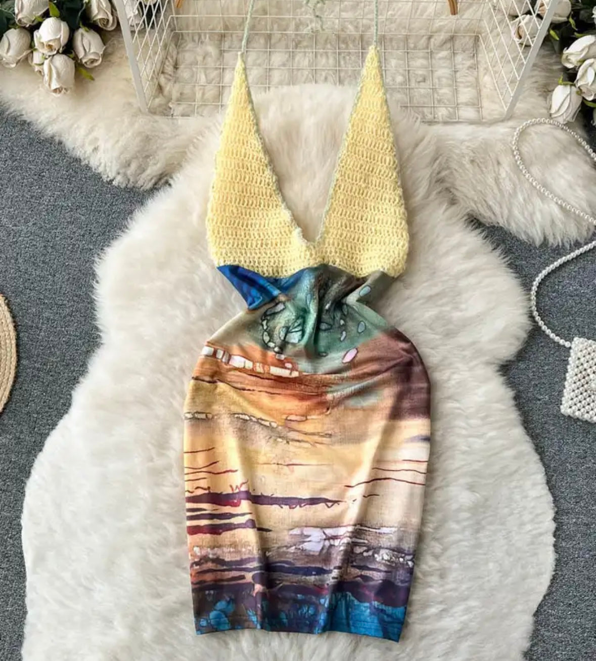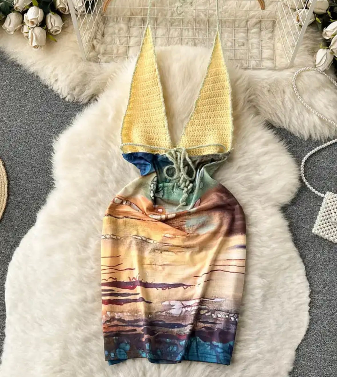 This multi-colour summer dress is the perfect addition to your wardrobe. With its intricate knit detailing, it adds a touch of unique style to any summer outfit. Made from lightweight fabric, it is comfortable and breathable for all-day wear. Stay stylish and cool this summer season with this must-have dress.