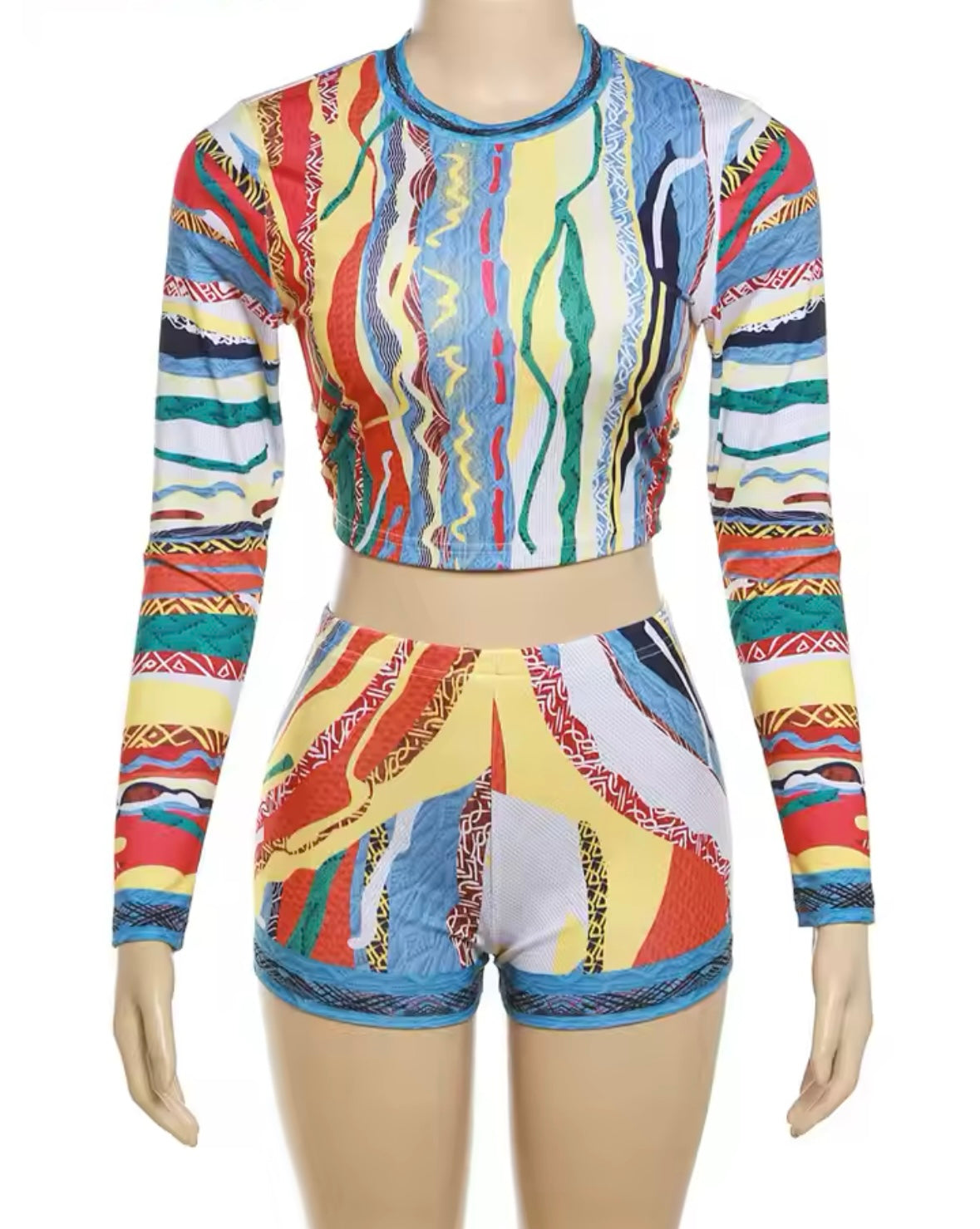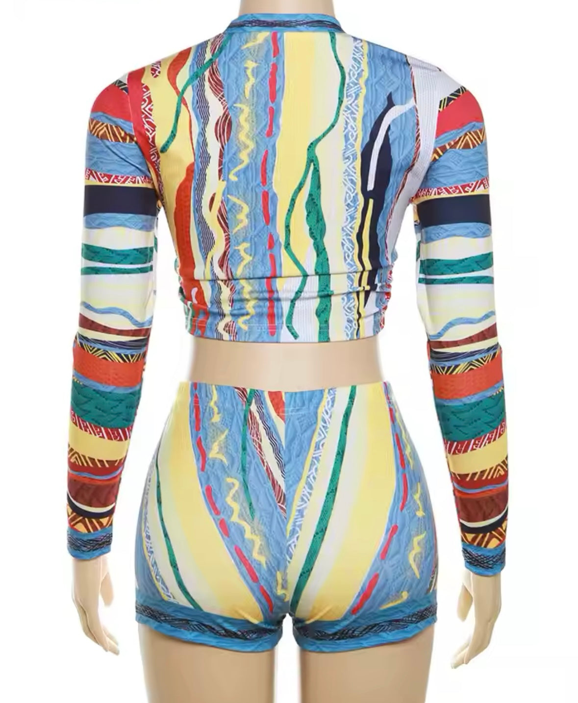 This Multi-colour two piece set adds a pop of color to any outfit with its colourful print. Perfect for mix and match, this set provides versatility and effortless fashion.