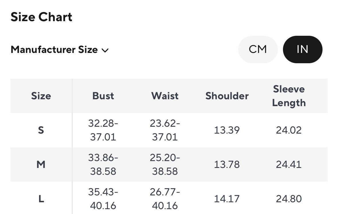 Available in S, M and L