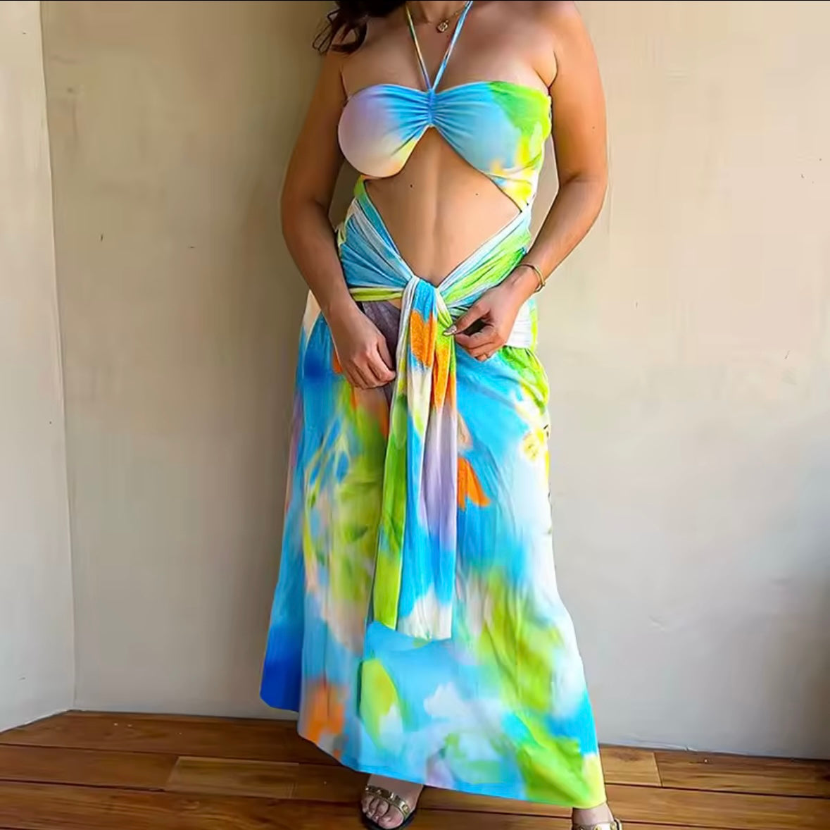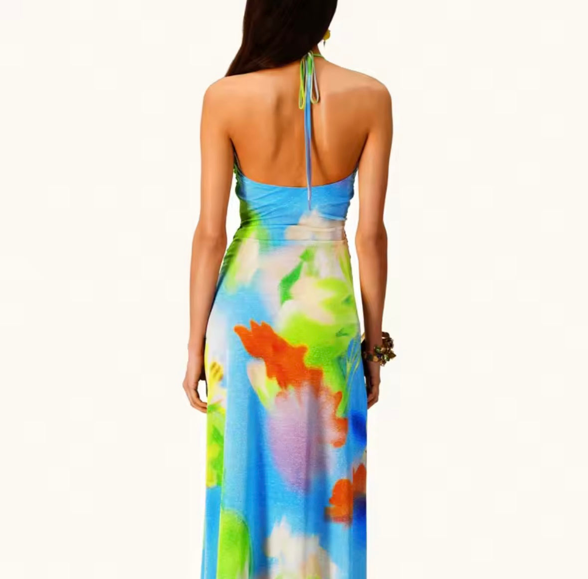 This multi-coloured cut out maxi dress is a stylish addition to any wardrobe. With its vibrant colors and unique cut outs, it is perfect for making a statement. Made of high-quality materials, this dress is comfortable and durable. Showcase your individuality and fashion expertise with this must-have piece.