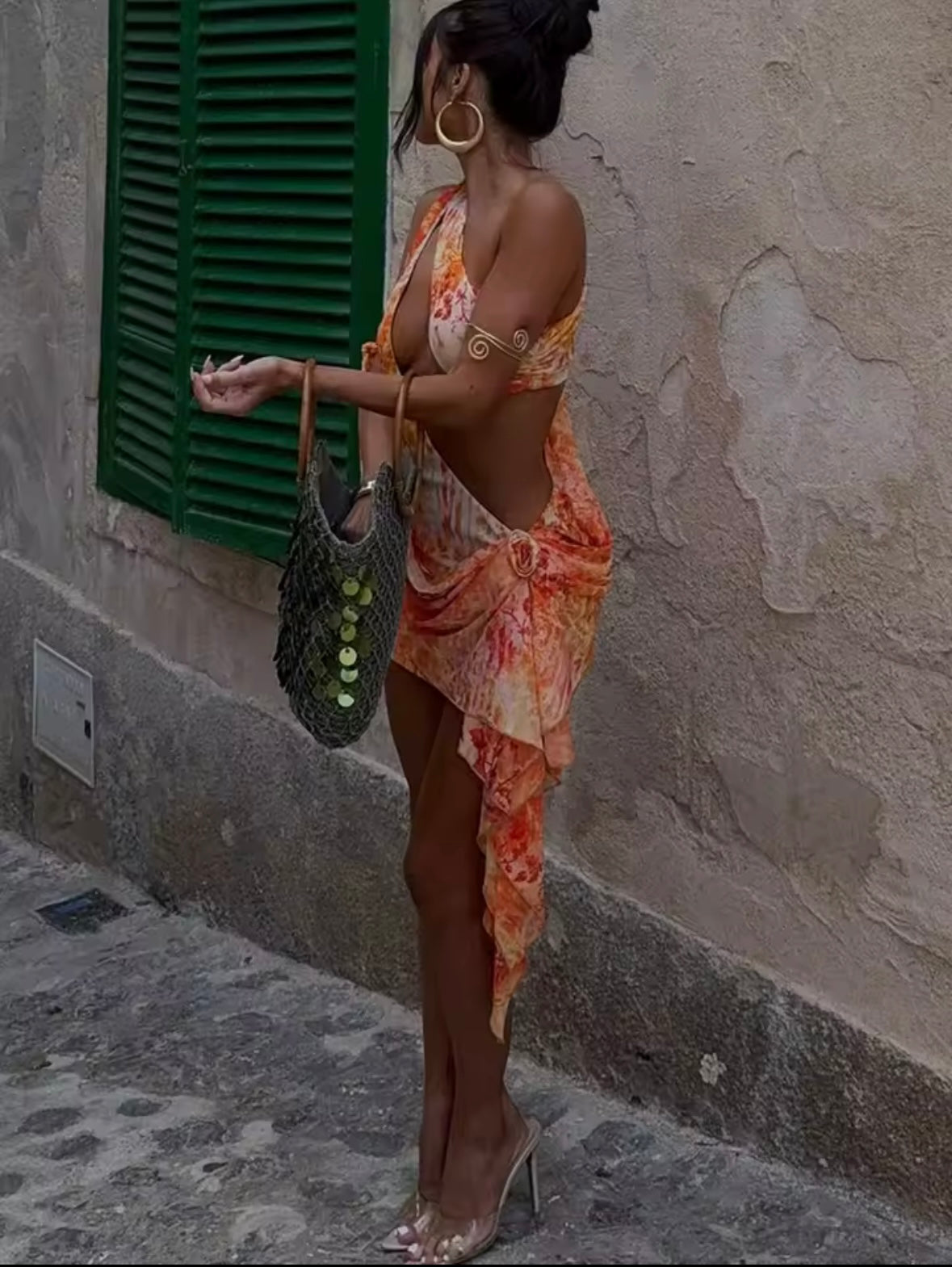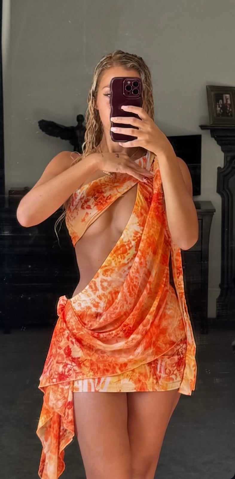 This stunning orange drape mini dress is a must-have for any fashion-forward woman. The vibrant color and elegant draping create a flattering silhouette. With this dress, you'll make a stylish statement at any occasion.