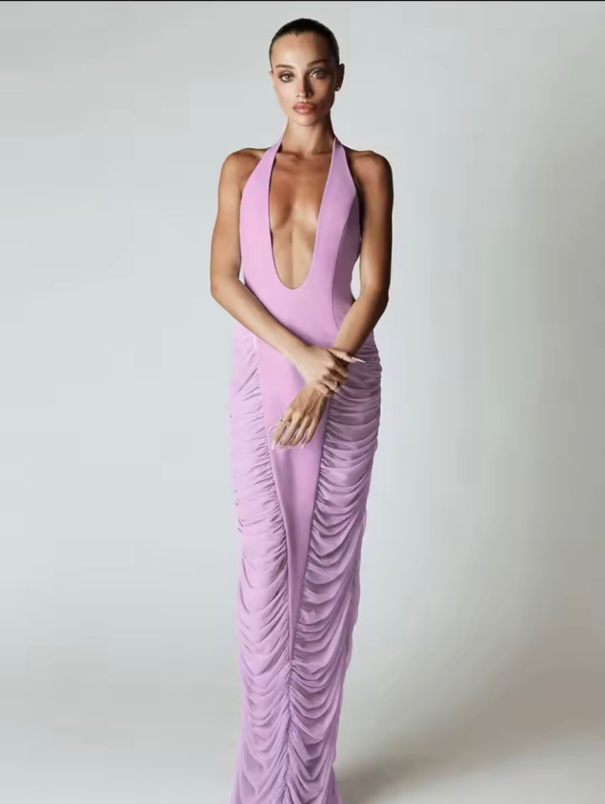 Purple plunge maxi dress