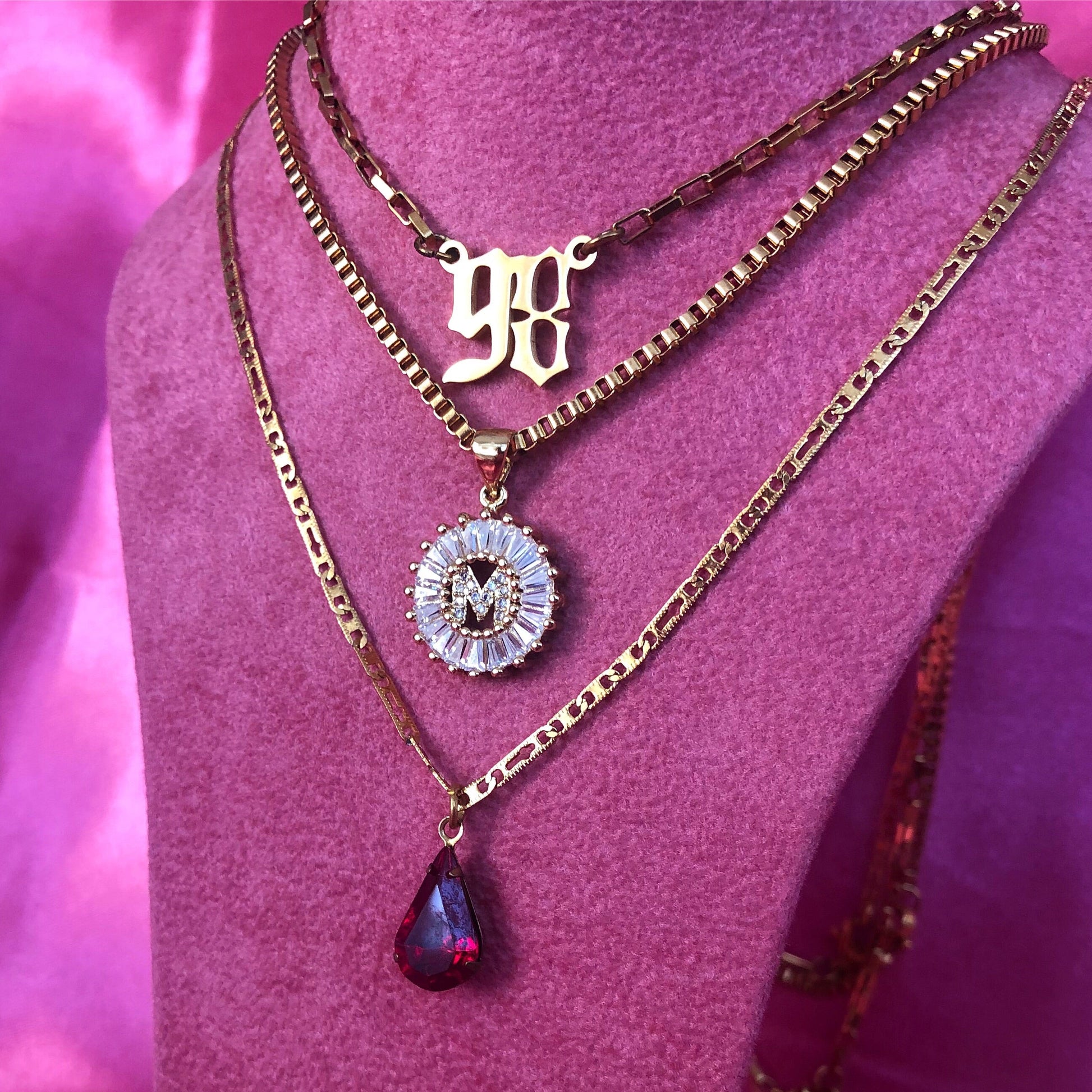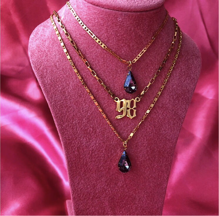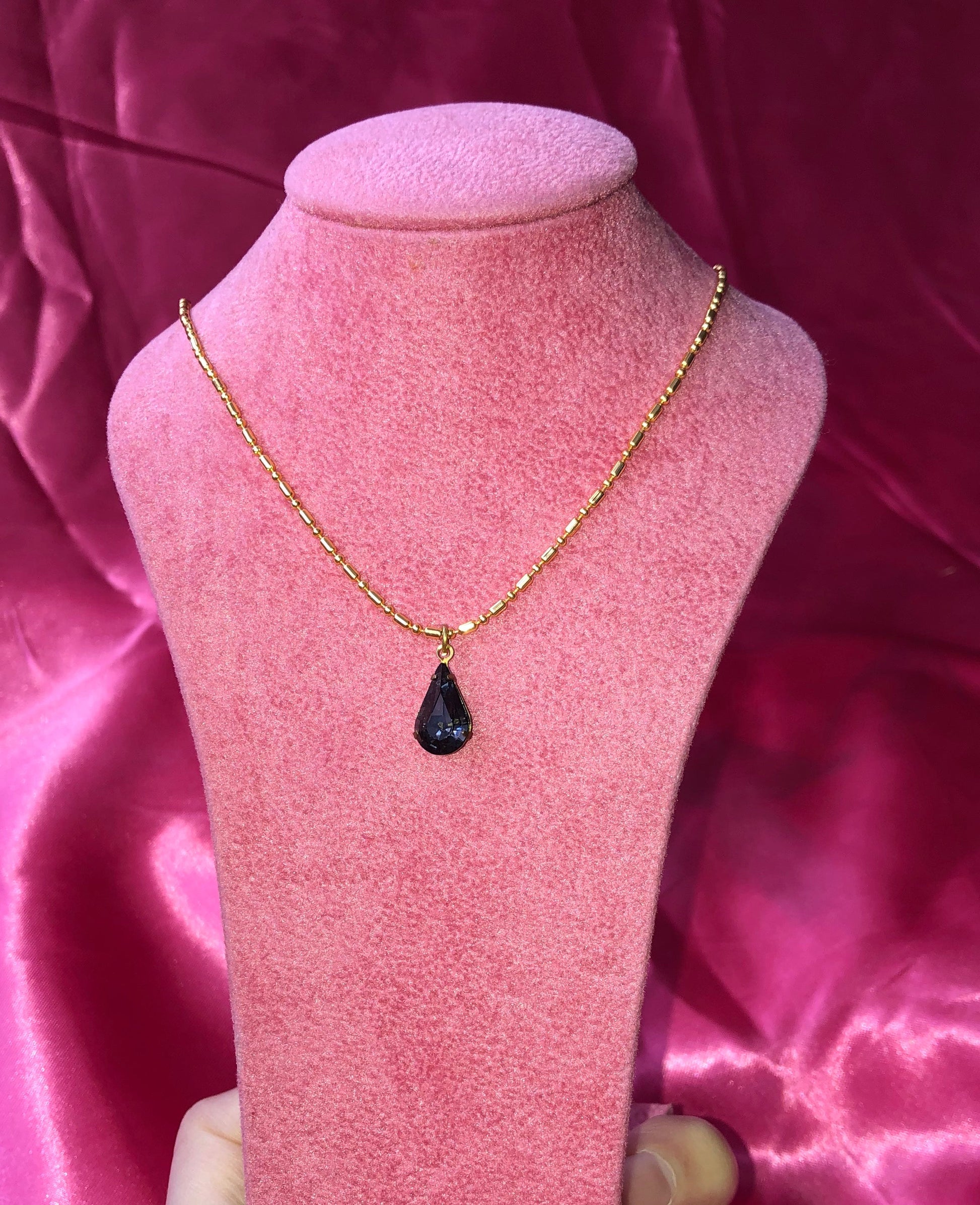 Beautiful handmade necklace with crystal pendant detail.