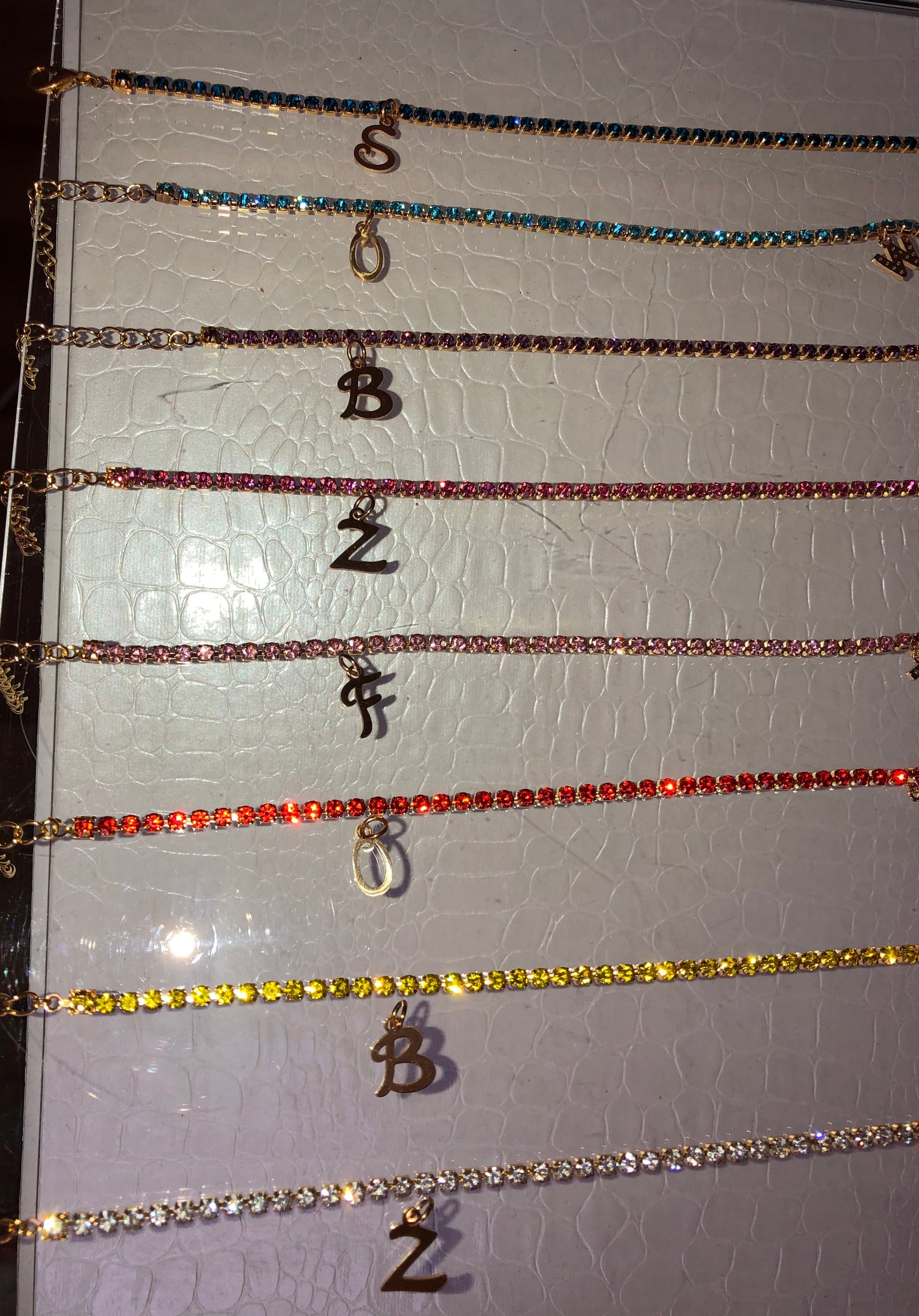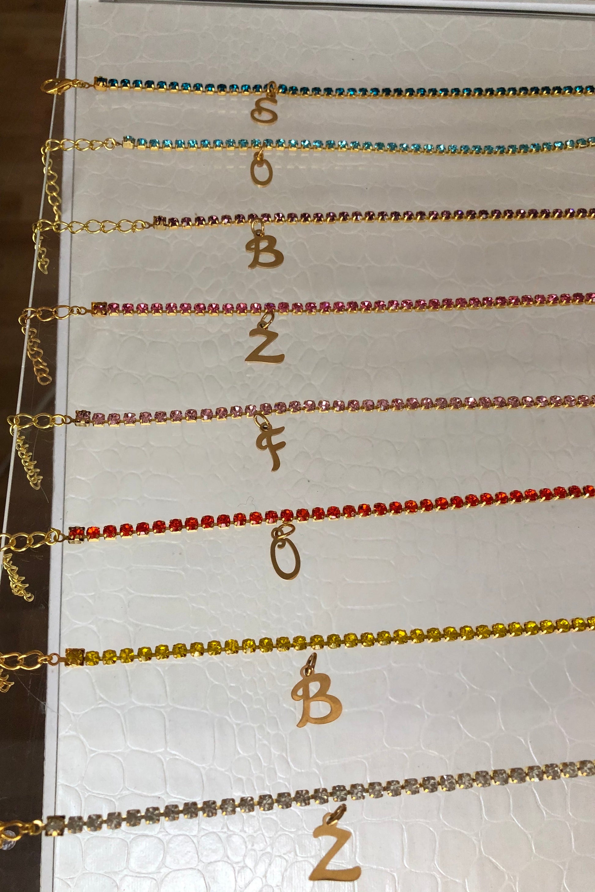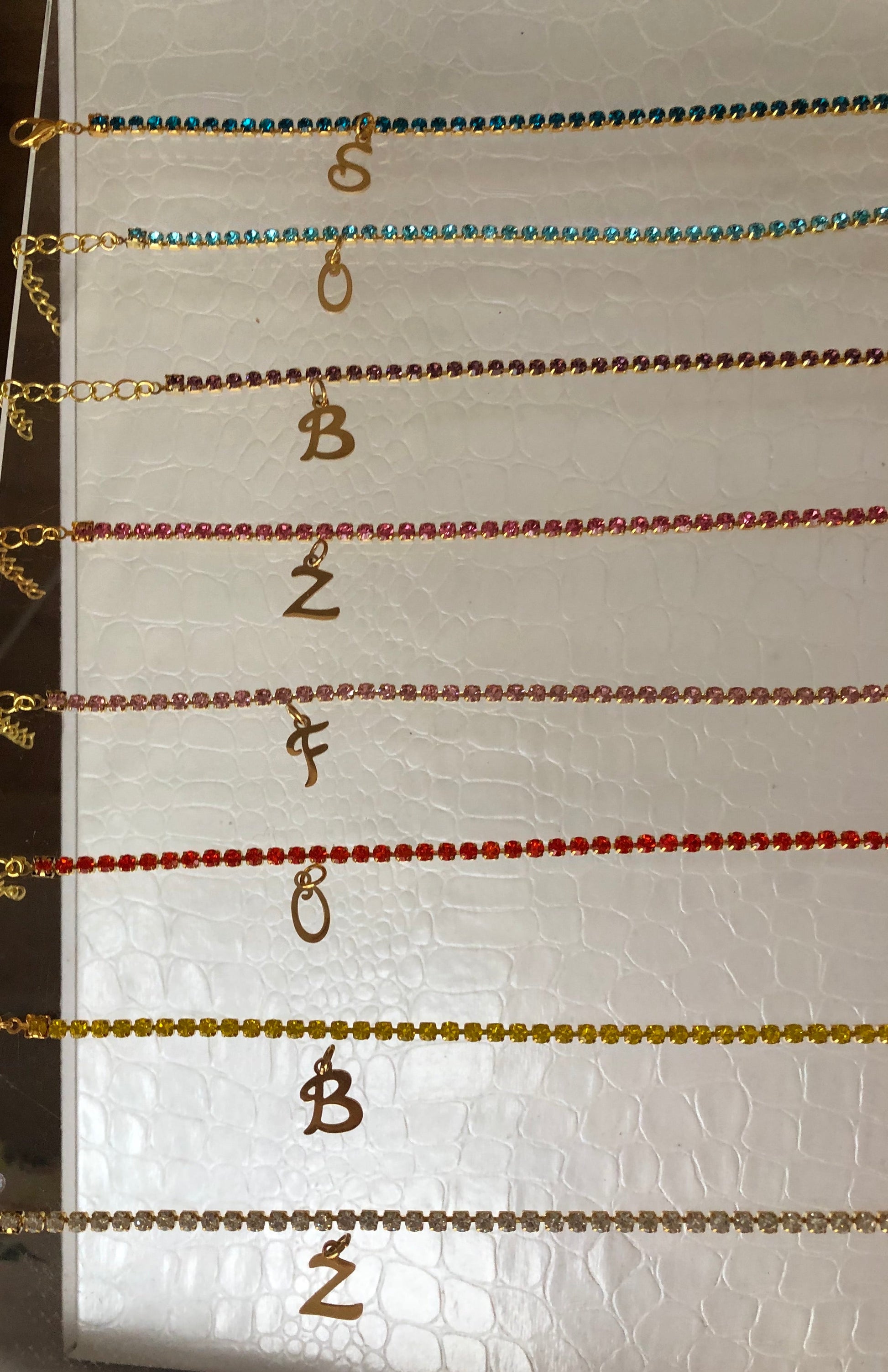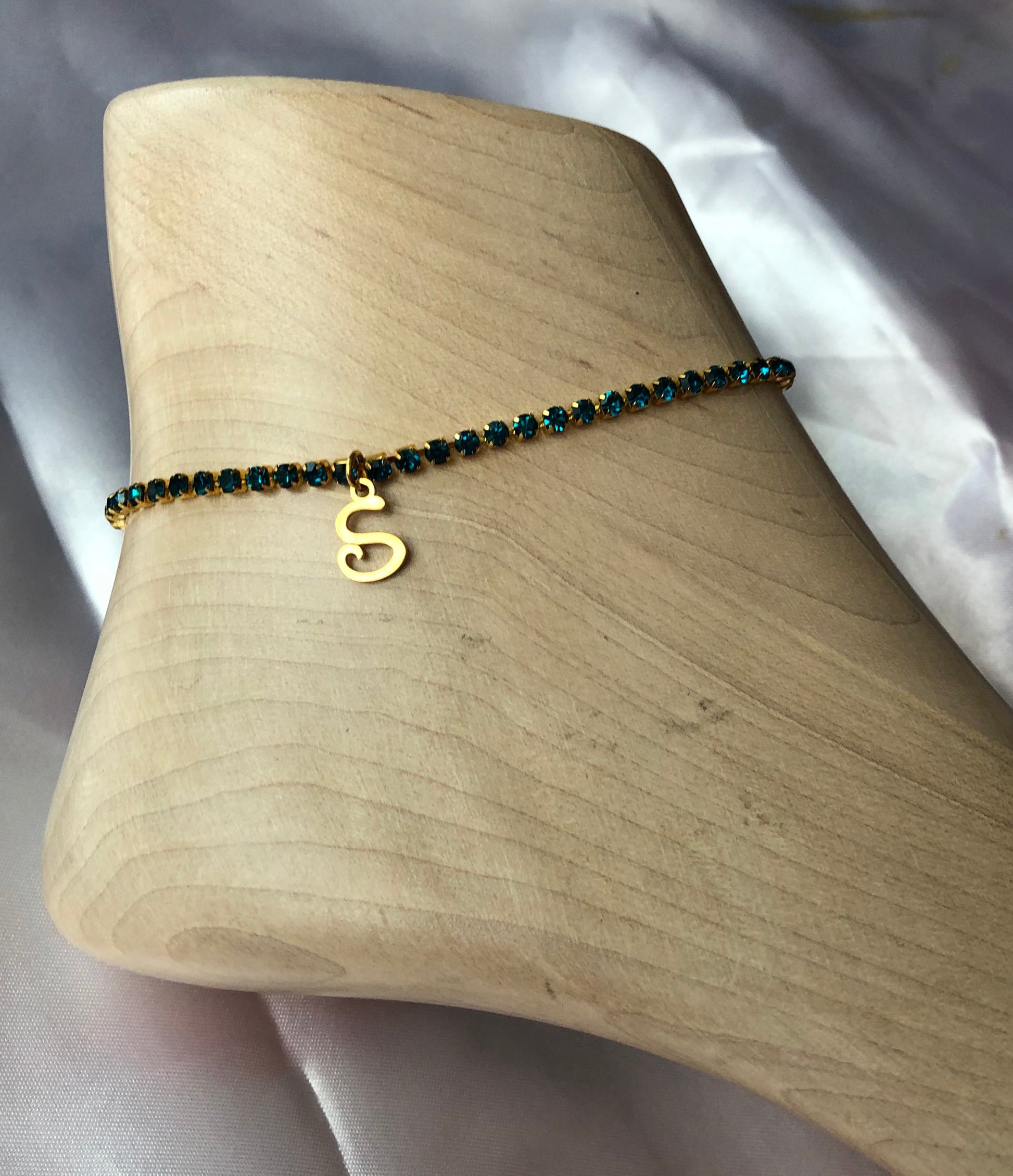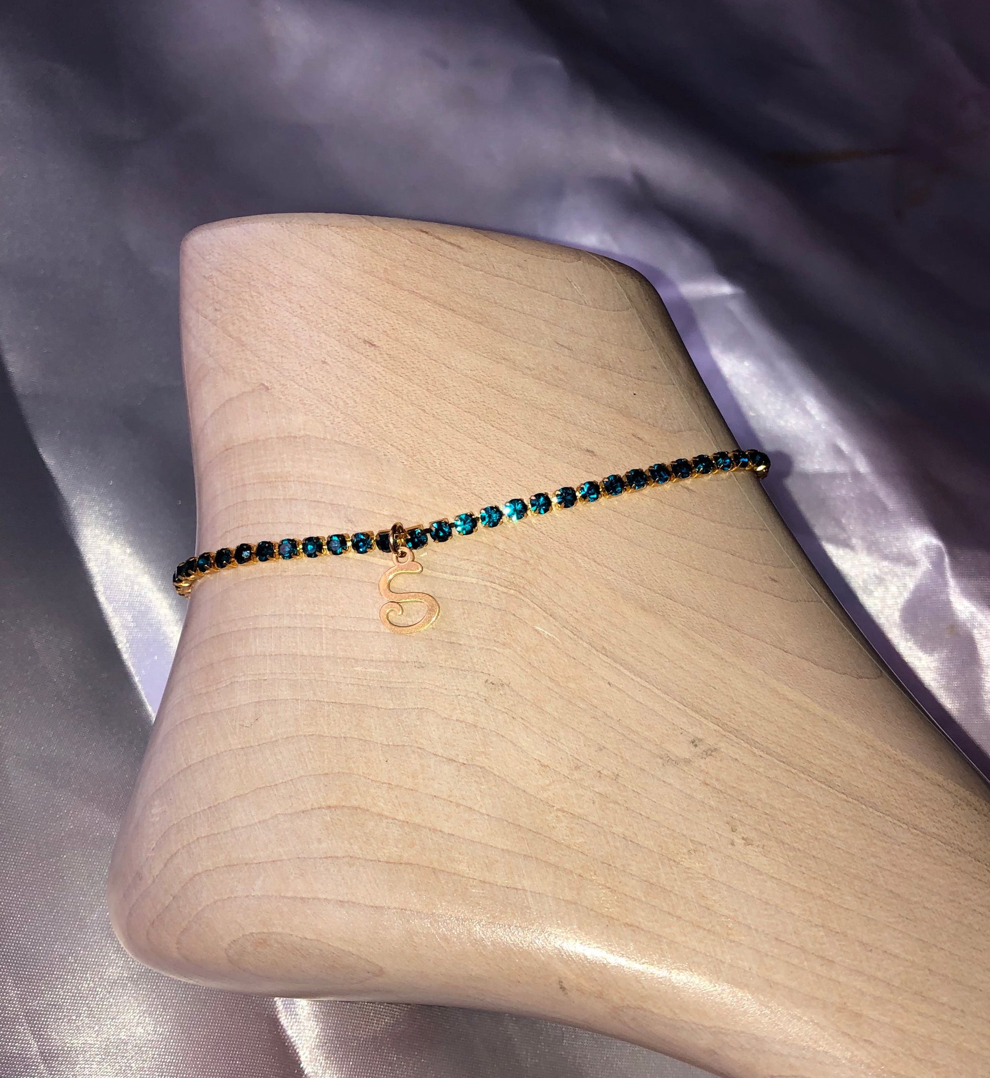 Beautiful handmade rhinestone anklet with a stainless steel letter pendant detail